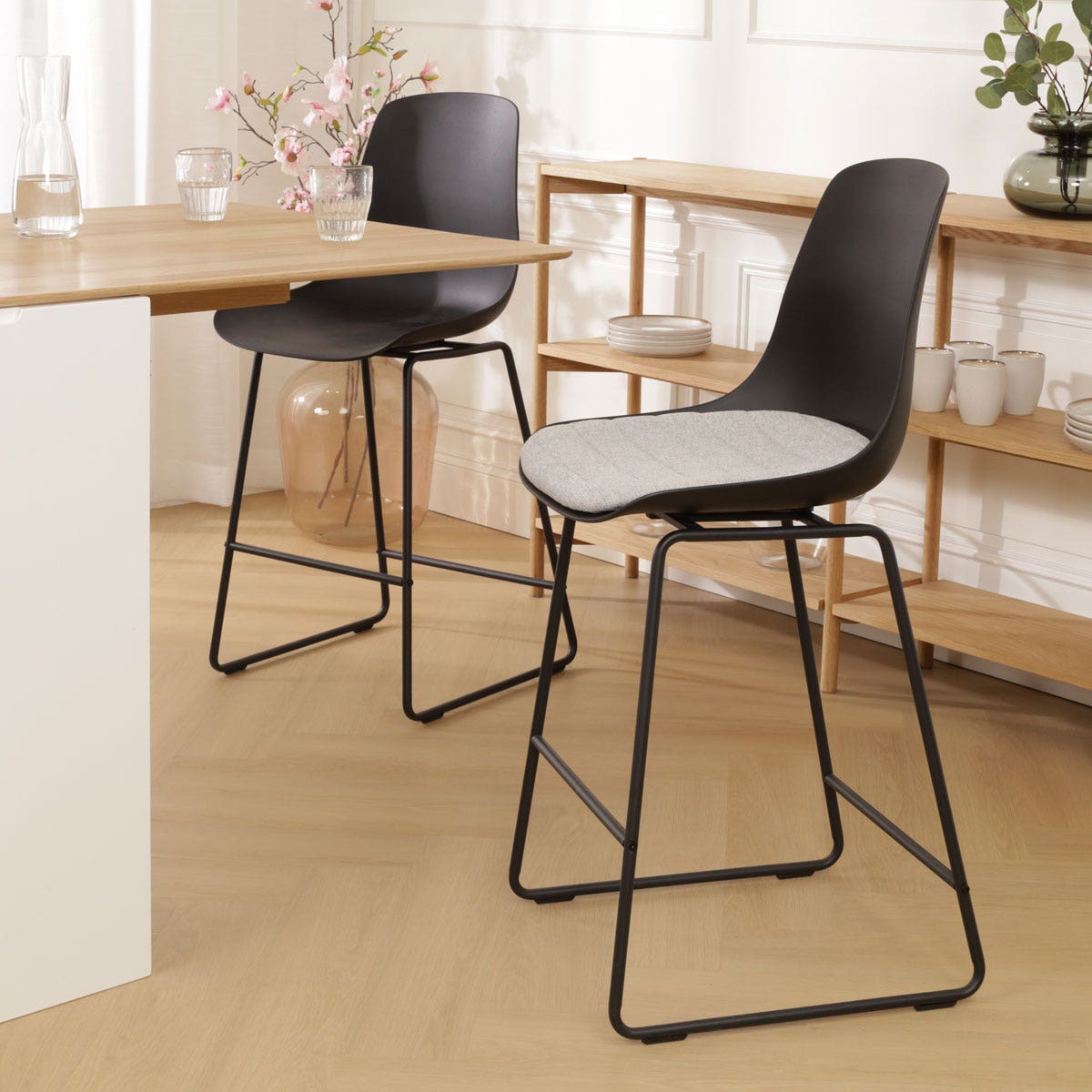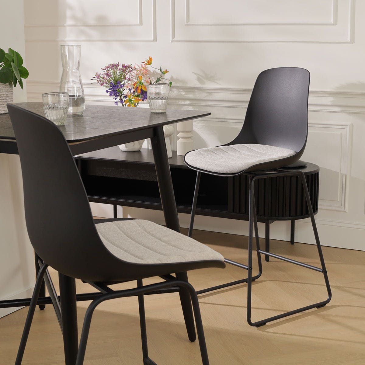 Deze barkruk heeft een strak en modern design dat een mooie aanvulling is voor veel verschillende woonstijlen. Het frame van deze kruk is gemaakt van metaal en is ontworpen met subtiele rondingen en slanke poten voor een minimalistische uitstraling. De zitting is gemaakt van kunststof, wat de Nino-Liv barkruk erg praktisch maakt in gebruik. Dit materiaal is duurzaam, slijtvast en gemakkelijk schoon te maken als er is geknoeid. De perfecte keuze voor een eethoek waar veel tijd wordt doorgebracht dus. Het vaste zitkussen zorgt ervoor dat je net iets zachter zit en voegt bovendien een vleugje kleur toe in de eethoek. Maak een keuze uit de vijf verschillende kleuren stoffen bekleding en kies tussen wit of zwart voor de zitting en het frame, om deze barkruk helemaal aan jouw inrichting aan te passen. Met een zithoogte van 74,5 cm is deze kunststof barkruk geschikt om te gebruiken aan een hoge bar of eettafel. Op zoek naar een lager exemplaar? De Nino-Liv barkruk is ook verkrijgbaar met aan lagere zithoogte.