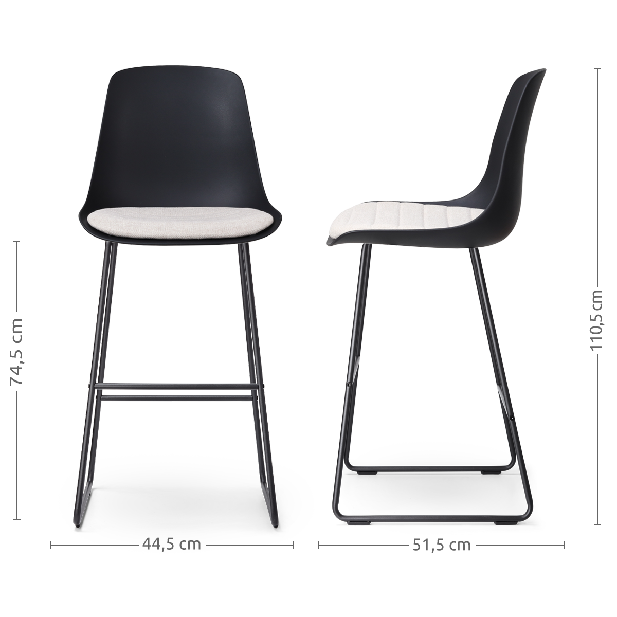 - Dankzij de zithoogte van 74,5 cm geschikt voor aan een bar of hoge eettafel met een hoogte van ca. 98-105 cm