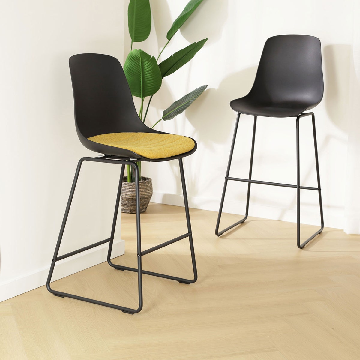 Deze barkruk heeft een strak en modern design dat een mooie aanvulling is voor veel verschillende woonstijlen. Het frame van deze kruk is gemaakt van metaal en is ontworpen met subtiele rondingen en slanke poten voor een minimalistische uitstraling. De zitting is gemaakt van kunststof, wat de Nino-Liv barkruk erg praktisch maakt in gebruik. Dit materiaal is duurzaam, slijtvast en gemakkelijk schoon te maken als er is geknoeid. De perfecte keuze voor een eethoek waar veel tijd wordt doorgebracht dus. Het vaste zitkussen zorgt ervoor dat je net iets zachter zit en voegt bovendien een vleugje kleur toe in de eethoek. Maak een keuze uit de vijf verschillende kleuren stoffen bekleding en kies tussen wit of zwart voor de zitting en het frame, om deze barkruk helemaal aan jouw inrichting aan te passen. Met een zithoogte van 74,5 cm is deze kunststof barkruk geschikt om te gebruiken aan een hoge bar of eettafel. Op zoek naar een lager exemplaar? De Nino-Liv barkruk is ook verkrijgbaar met aan lagere zithoogte.