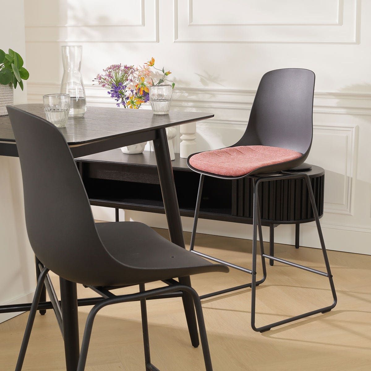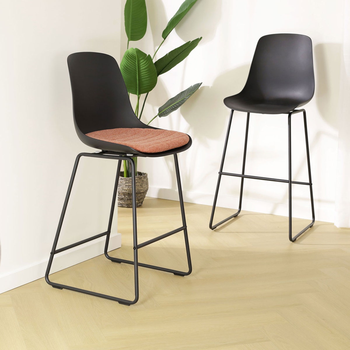 Deze barkruk heeft een strak en modern design dat een mooie aanvulling is voor veel verschillende woonstijlen. Het frame van deze kruk is gemaakt van metaal en is ontworpen met subtiele rondingen en slanke poten voor een minimalistische uitstraling. De zitting is gemaakt van kunststof, wat de Nino-Liv barkruk erg praktisch maakt in gebruik. Dit materiaal is duurzaam, slijtvast en gemakkelijk schoon te maken als er is geknoeid. De perfecte keuze voor een eethoek waar veel tijd wordt doorgebracht dus. Het vaste zitkussen zorgt ervoor dat je net iets zachter zit en voegt bovendien een vleugje kleur toe in de eethoek. Maak een keuze uit de vijf verschillende kleuren stoffen bekleding en kies tussen wit of zwart voor de zitting en het frame, om deze barkruk helemaal aan jouw inrichting aan te passen. Met een zithoogte van 74,5 cm is deze kunststof barkruk geschikt om te gebruiken aan een hoge bar of eettafel. Op zoek naar een lager exemplaar? De Nino-Liv barkruk is ook verkrijgbaar met aan lagere zithoogte.
