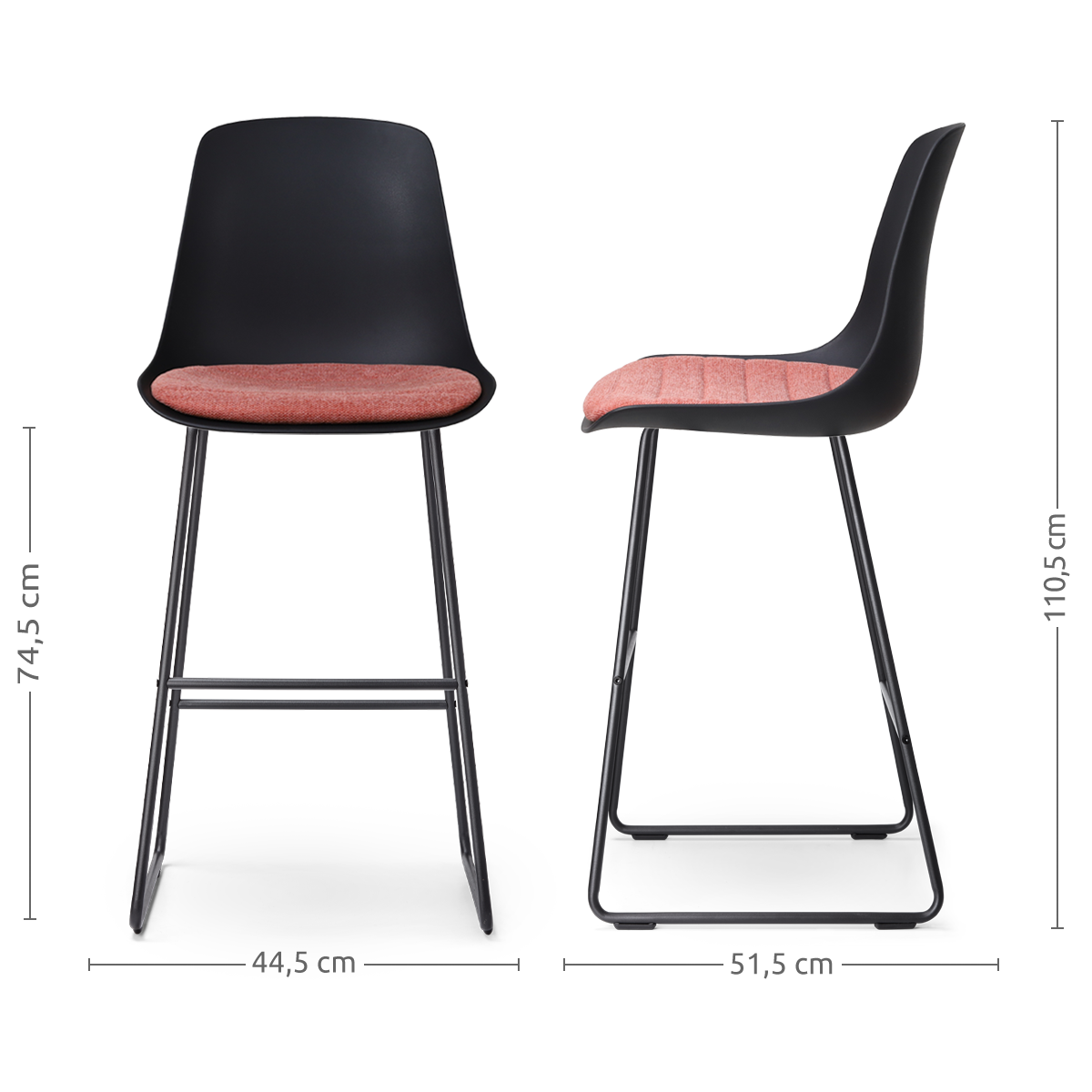- Dankzij de zithoogte van 74,5 cm geschikt voor aan een bar of hoge eettafel met een hoogte van ca. 98-105 cm