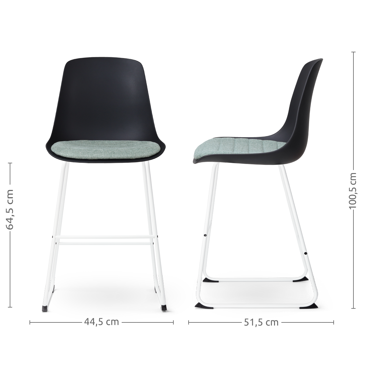 - Dankzij de zithoogte van 64,5 cm geschikt voor aan een kookeiland of keukenblad met een hoogte van ca. 88-95 cm
