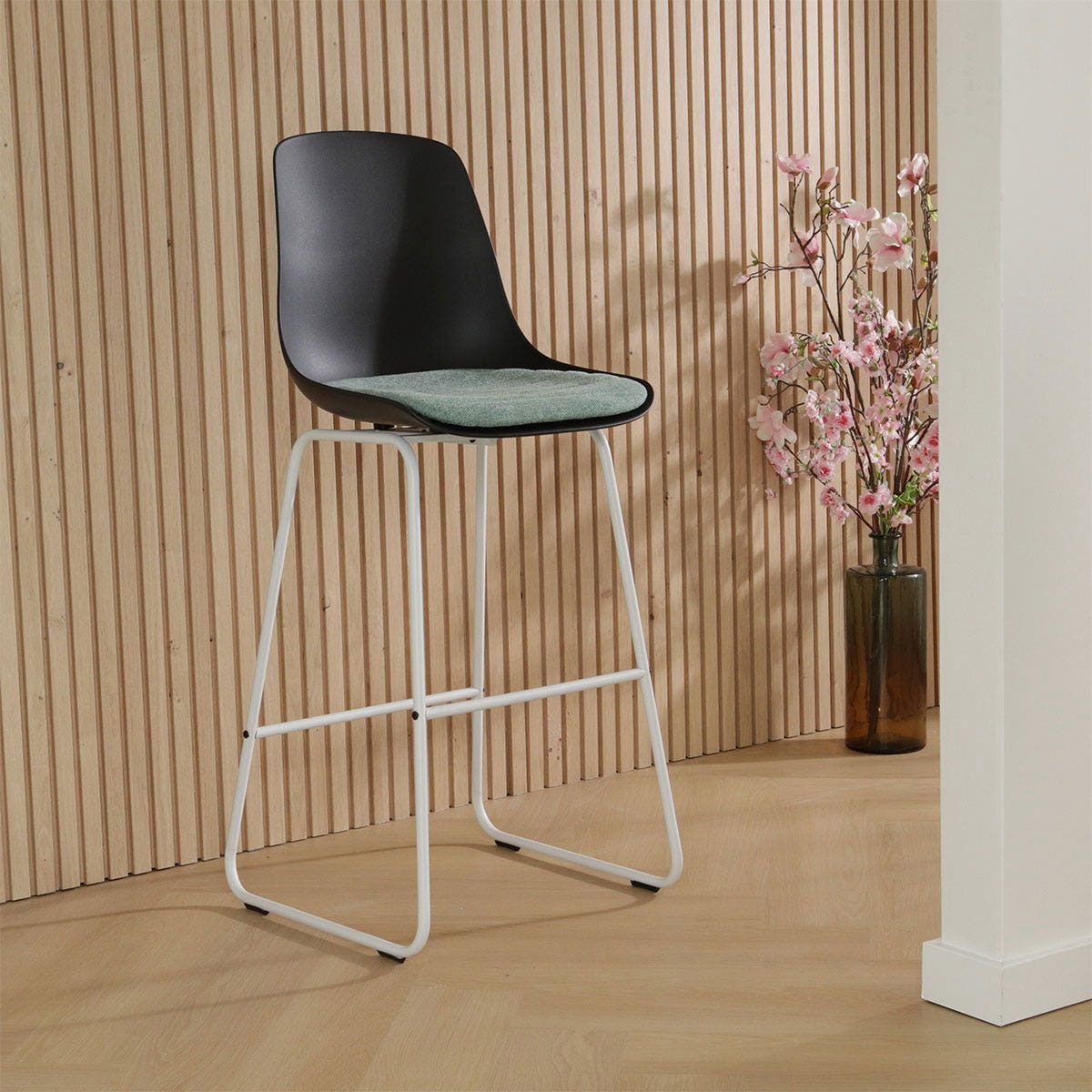 De barkruk heeft een slank en minimalistisch metalen frame dat voor stabiliteit zorgt. Het frame is voorzien van een voetsteun zodat je je benen niet hoeft te laten bungelen. De zitting is gemaakt van kunststof, wat zowel duurzaam als slijtvast is. Bovendien is dit materiaal erg onderhoudsvriendelijk en gemakkelijk schoon te maken, dus de Nino-Liv barkruk is zeer geschikt voor intensief gebruik. Om het comfort van deze moderne barkruk te verhogen, is de zitting voorzien van een vast stoelkussen dat is bekleed met zachte stof. Maak een keuze uit de verschillende kleuren zitting, frame en zitkussen om deze barkruk helemaal aan jouw wensen te laten voldoen. Met een zithoogte van 64,5 cm is deze barkruk geschikt om te gebruiken aan een kookeiland. Heb je een hogere barkruk nodig? Deze barkruk is ook verkrijgbaar met een zithoogte van 74,5 cm.
