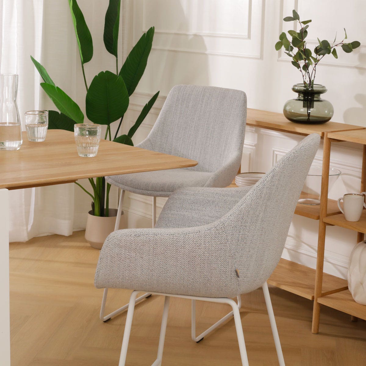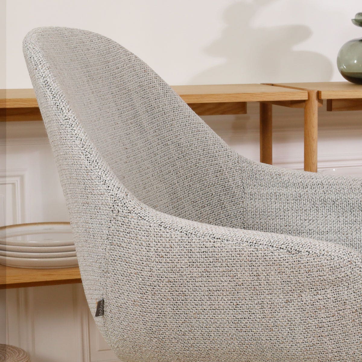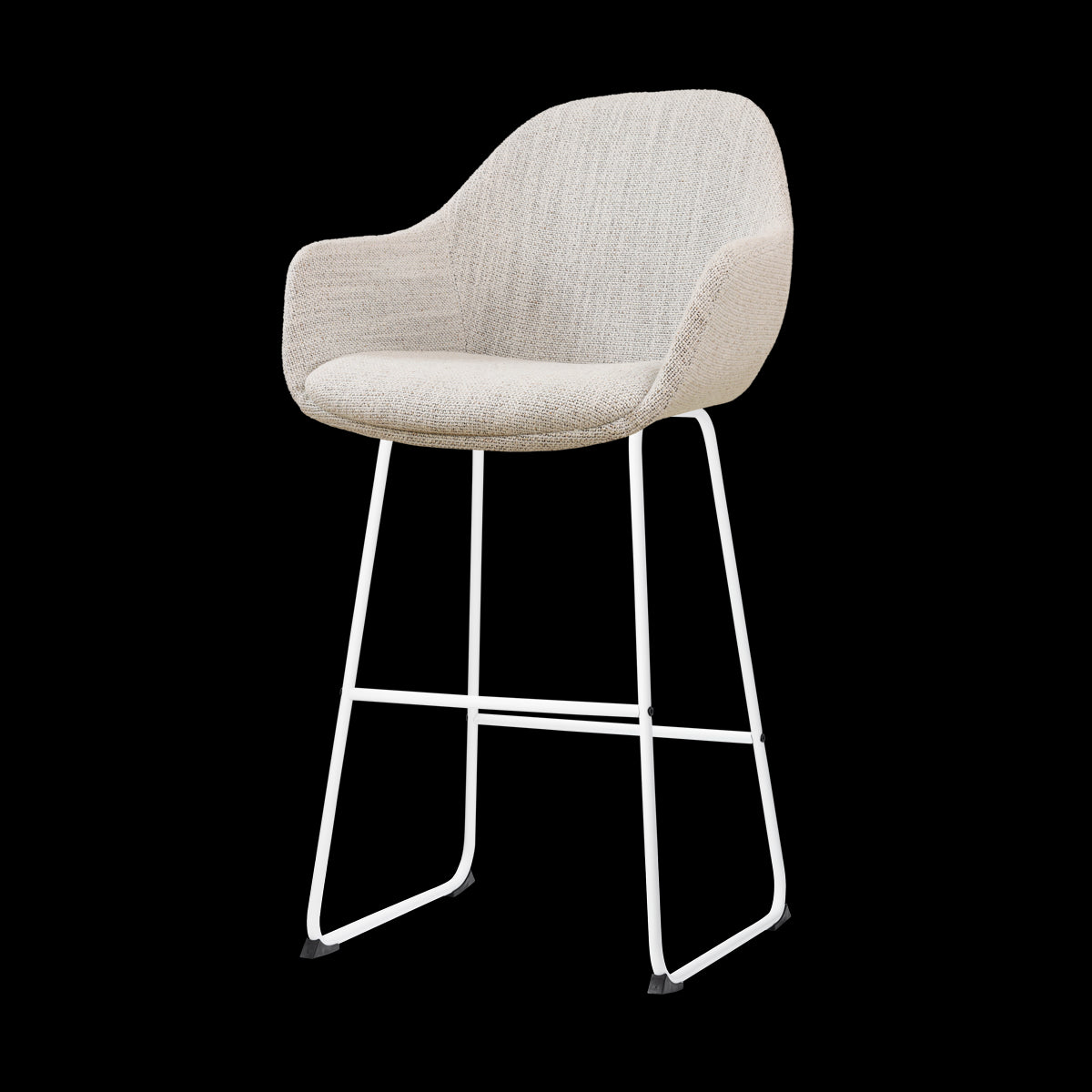 Deze barkruk in Scandinavische stijl is ontworpen met een minimalistisch wit metalen onderstel dat is voorzien van een voetsteun. De zitting is volledig bekleed met zachte stof in beige gemêleerde kleur en heeft een sterke houten kern binnenin om de rug goed te ondersteunen. Daarnaast is de zitting voorzien van armleuningen, zodat je je armen lekker kan laten rusten. Dankzij de zithoogte van 75 cm is deze barkruk geschikt om te gebruiken aan een bar of hoge tafel. Barkrukken met een armleuning en rugleuning bieden optimaal comfort, zodat je aan de bar net zo comfortabel zit als aan een eettafel. De combinatie van de witte poten met de beige bekleding past helemaal bij een Scandinavische inrichting, maar ook als je op zoek bent naar een landelijke barkruk met armleuningen is de Nino-Mae kruk een uitstekende keuze.