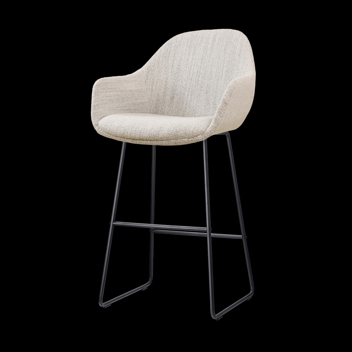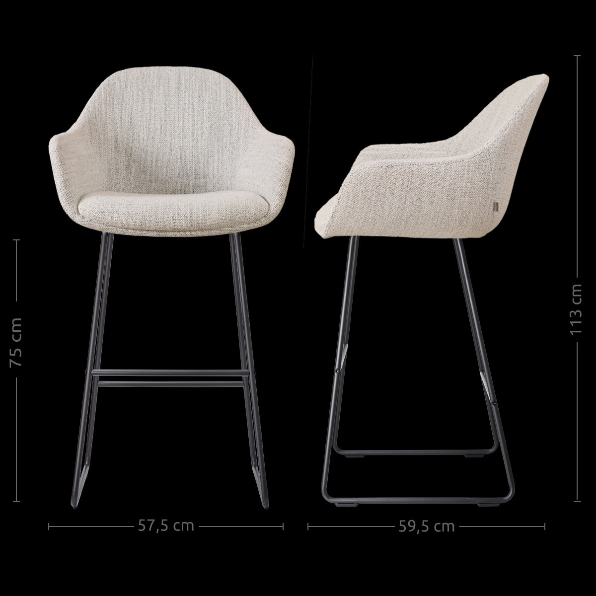 Deze hoge barkruk heeft een uitnodigende ronde zitting met armleuningen en is uitgerust met een stevige voetsteun. Dit biedt extra ondersteuning voor je armen en benen, waardoor je urenlang comfortabel aan de bar kunt zitten. De beige gemêleerde stof voelt zacht aan en voegt een warme, moderne uitstraling toe aan de barkruk. Het zwarte metalen onderstel zorgt voor stabiliteit en geeft de kruk een strakke, eigentijdse look. Dankzij de zithoogte van 75 centimeter past deze barstoel perfect bij een hoge eettafel of bar. Of je nu gaat voor een moderne inrichting of een hotel chique stijl, met en set van deze barstoelen in de keuken geef je jouw interieur direct meer klasse.