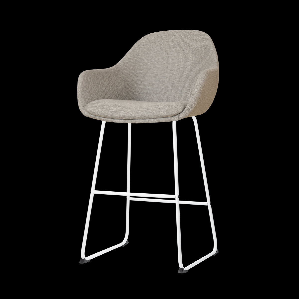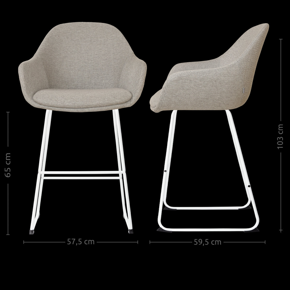 De Nino-Mae barkruk in warm grijs met witte poten is een stijlvolle en praktische toevoeging aan je keuken. Ideaal voor aan een kookeiland, biedt deze barkruk met een zithoogte van 65 cm optimaal comfort. De volledig gestoffeerde zitting is gemaakt van een sterke en zachte stof, waardoor je urenlang comfortabel kunt zitten. Het moderne Scandinavische ontwerp met ronde vormen past perfect in een eigentijdse of minimalistische inrichting. Met armleuningen die naadloos aflopen van 84,5 tot 79 cm, combineert deze barkruk elegantie met functionaliteit. Het stevige metalen frame zorgt voor stabiliteit en de voetsteun maakt het zitten extra prettig. Dankzij de warme grijze kleur en witte poten is de Nino-Mae gemakkelijk te combineren met andere kleuren en materialen in je keuken. Of je nu kiest voor een moderne of luxe uitstraling, deze barkruk voegt altijd een vleugje klasse toe.