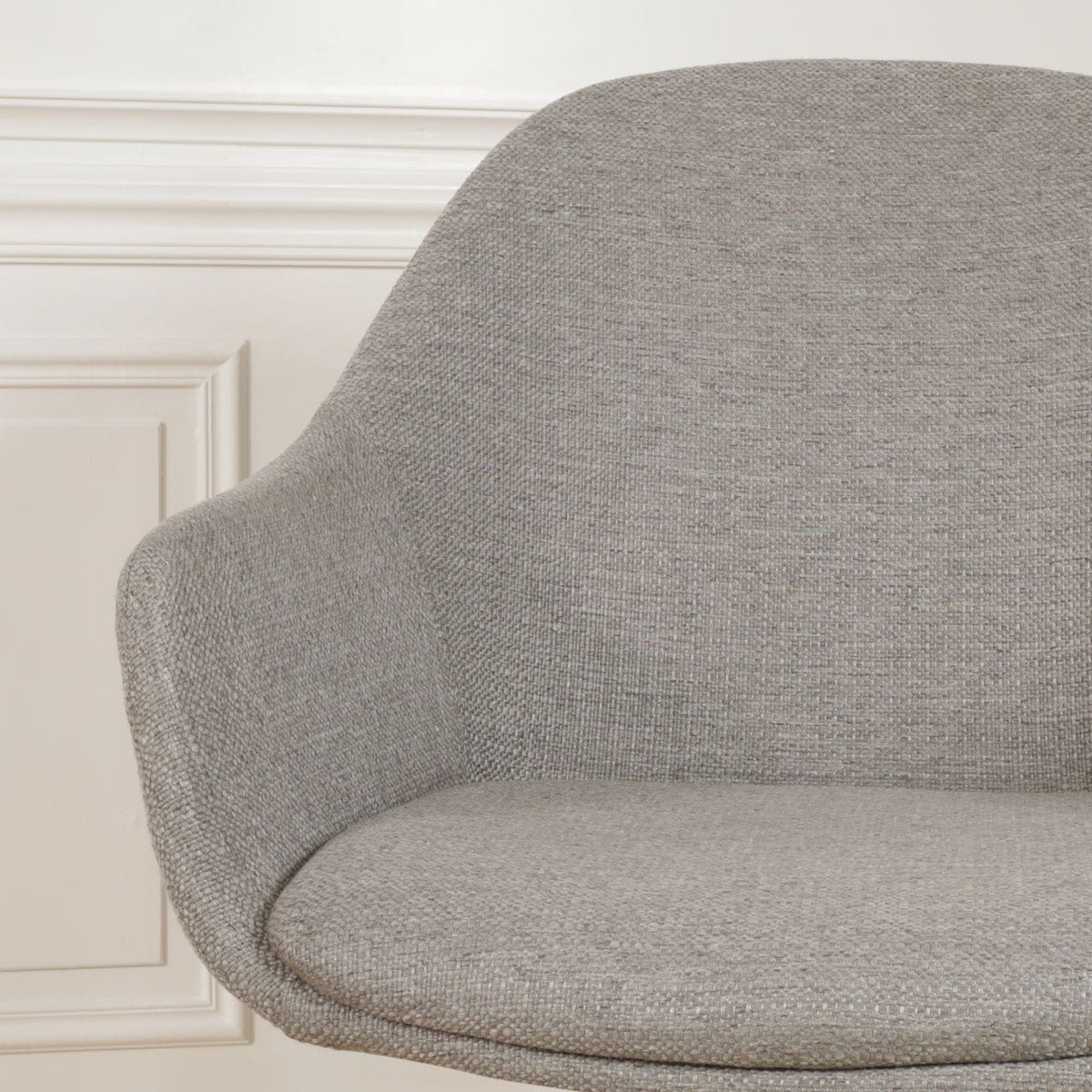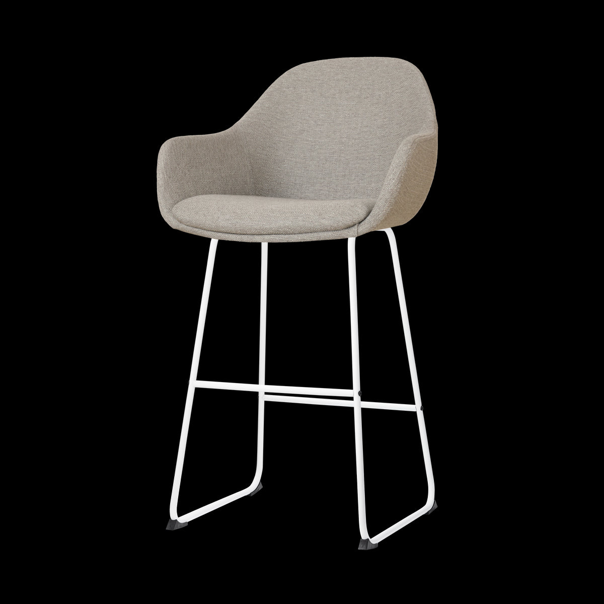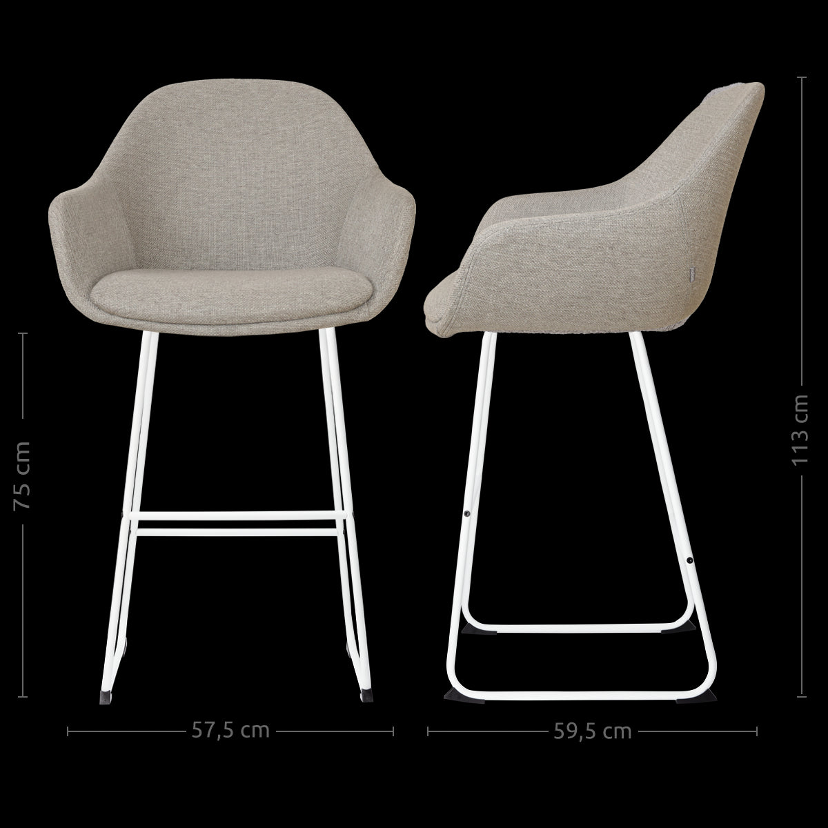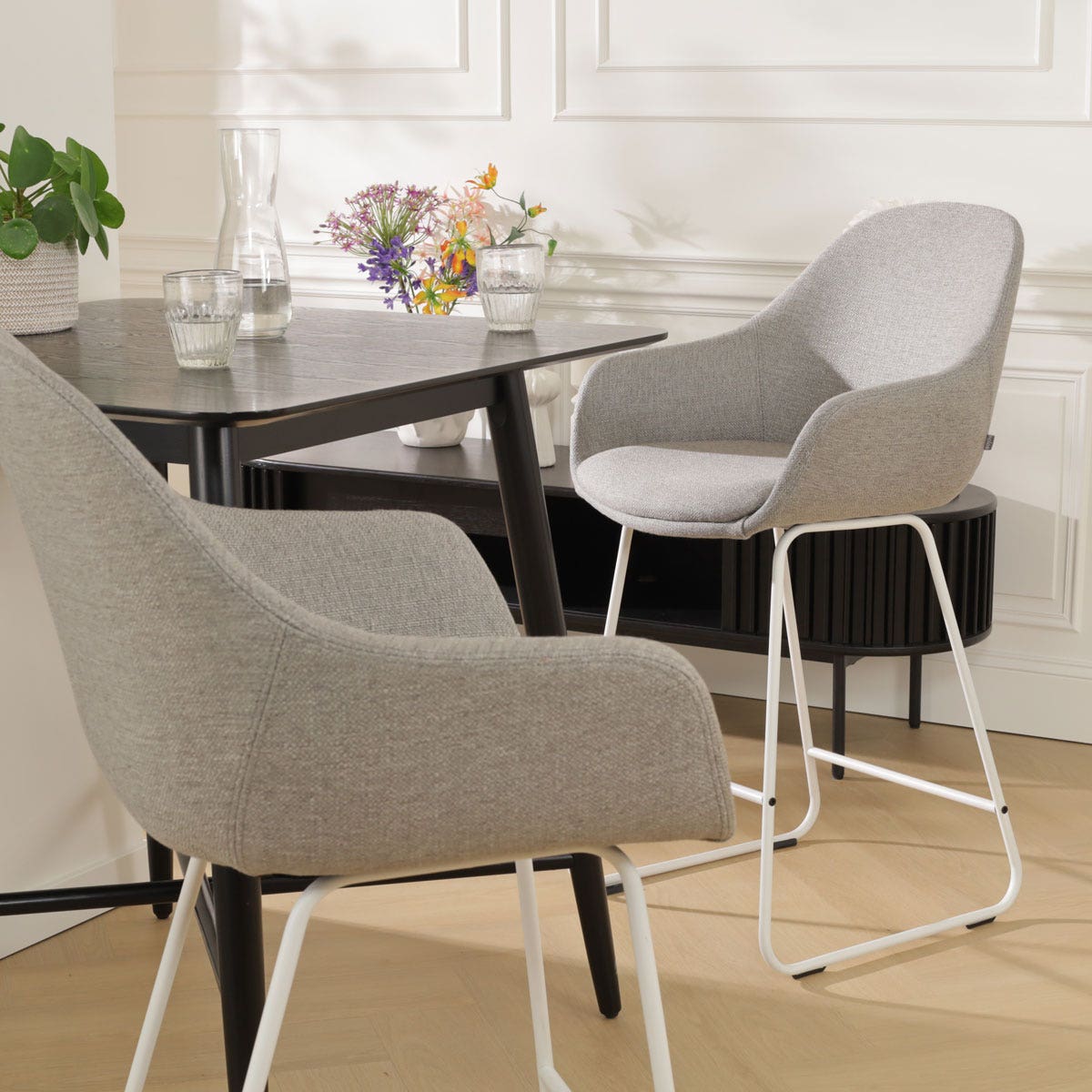 De Nino-Mae barkruk combineert een moderne uitstraling met praktisch comfort. Dankzij de warme grijze stoffen zitting en de stevige witte metalen poten past deze barkruk moeiteloos in een Scandinavisch of eigentijds interieur. De ronde zitting met armleuningen biedt een ergonomische ondersteuning, zodat je urenlang comfortabel kunt zitten, of dat nu aan de bar is of bij een hoge eettafel. Met een zithoogte van 75 centimeter is deze barkruk perfect geschikt voor een bar of tafel van circa 98 tot 105 centimeter hoog.