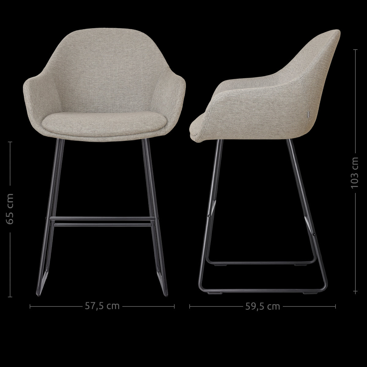 - Dankzij de zithoogte van 65 cm geschikt voor aan een kookeiland of keukenblad met een hoogte van ca. 88-95 cm.