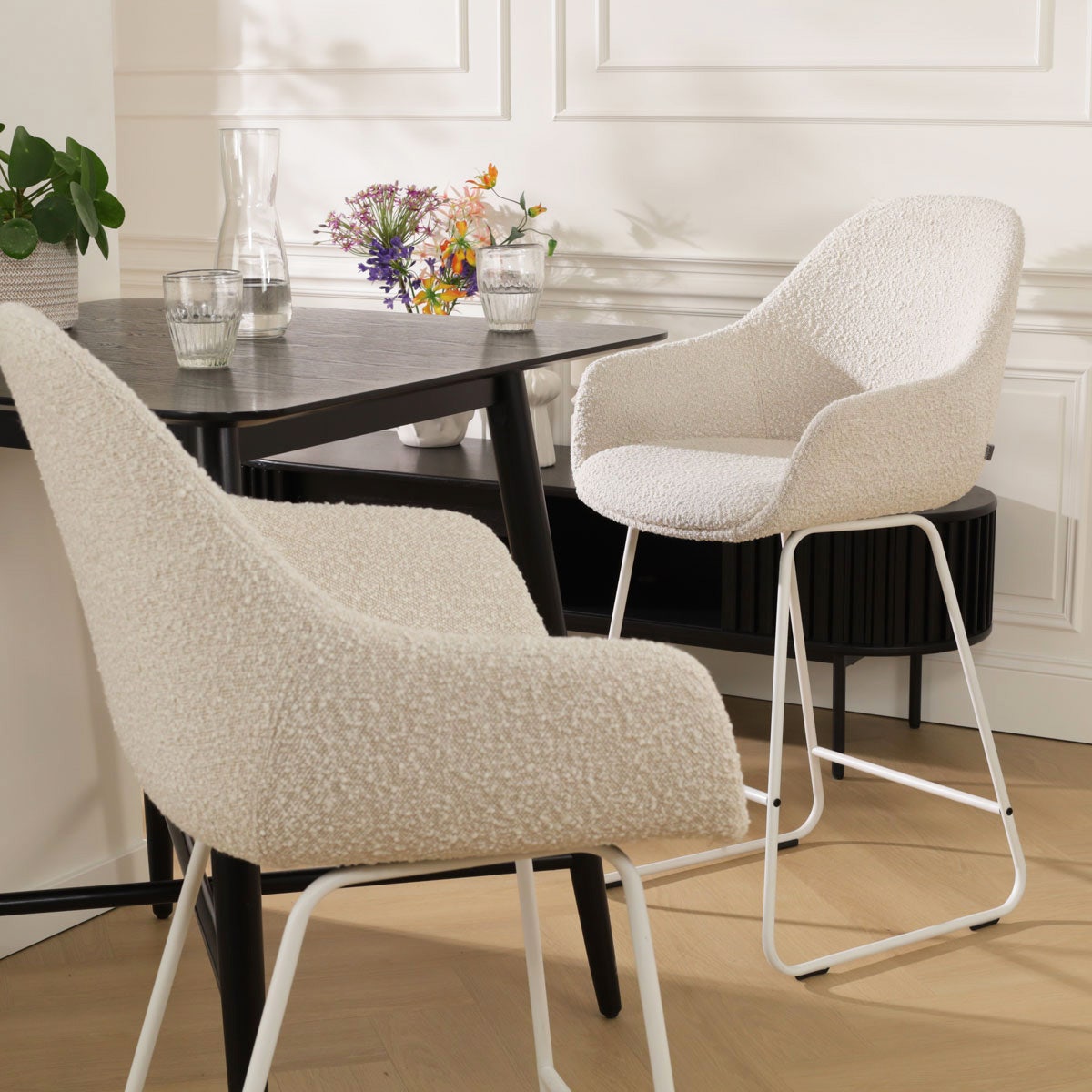Heerlijk genieten van je kopje koffie of de krant aan het kookeiland doe je met de set van twee Nino-Mae barkrukken van Nolon.
