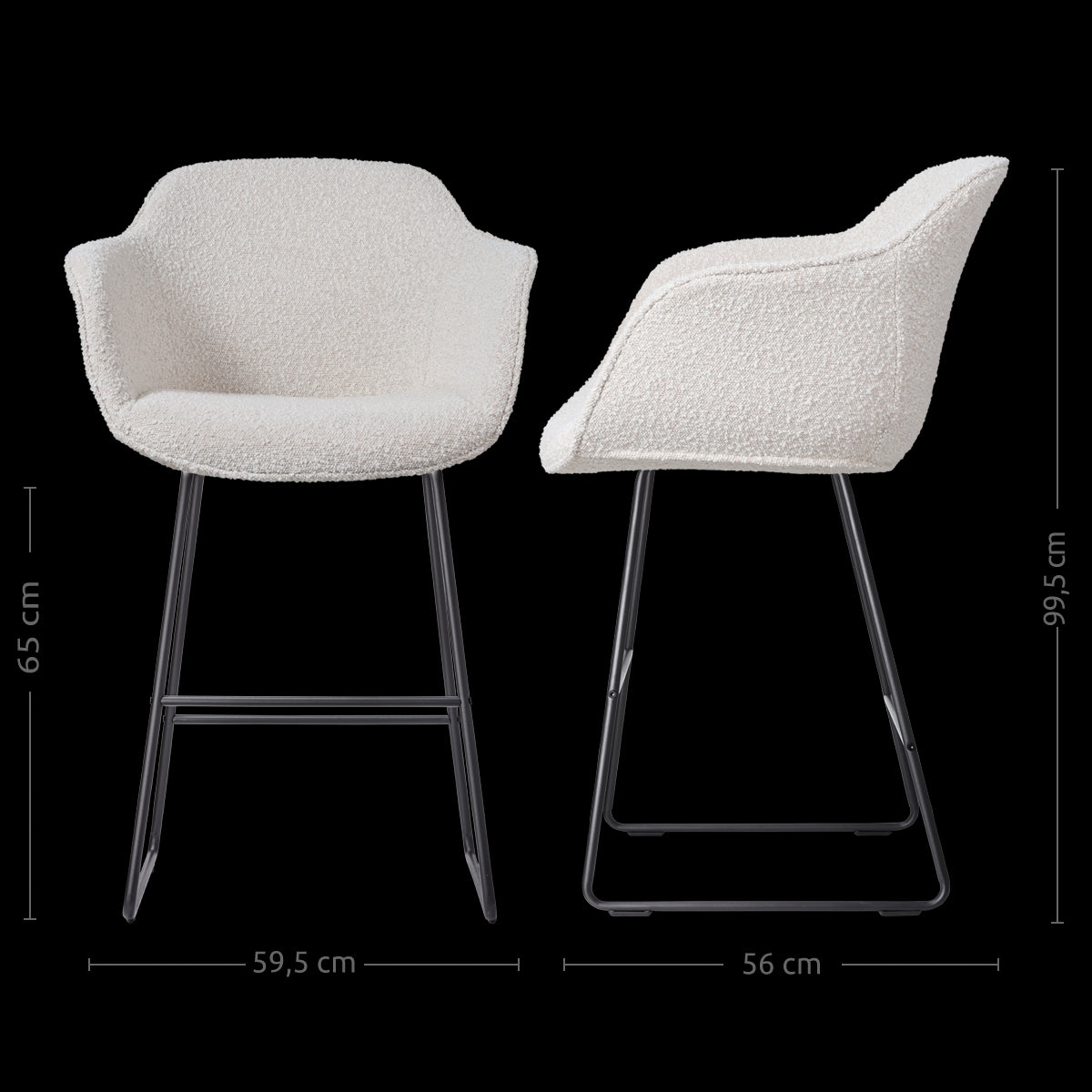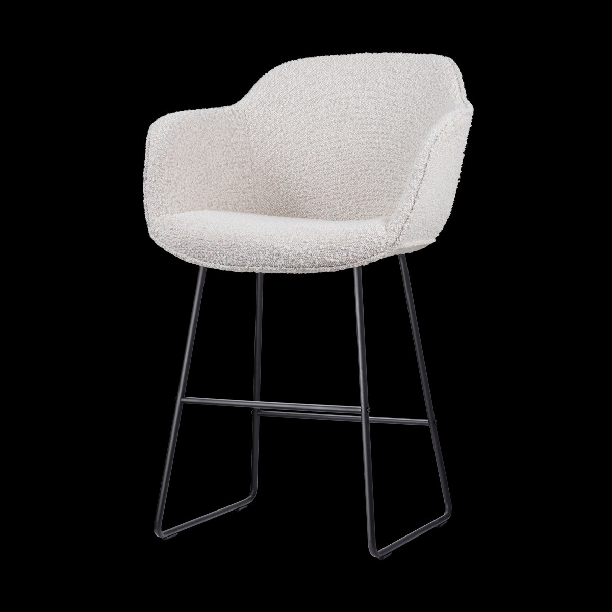 De combinatie van het strakke metalen onderstel en de zachte textuur van de bekleding maakt deze barkruk een must-have voor liefhebbers van stijl en comfort. De barkruk heeft een zwart metalen onderstel met een zithoogte van 65 cm, waardoor de kruk geschikt is om te gebruiken aan een kookeiland. De voetsteun zorgt ervoor dat je ook hoog boven de grond comfortabel kan zitten. De zitting van deze kookeiland barkruk is daarnaast ontworpen met armleuningen en een zachte bouclé bekleding. Dit materiaal is weer helemaal terug van weggeweest en dat snappen wij wel! Deze stof heeft een chique en warme uitstraling waarmee iedere keuken of eethoek direct gezellig wordt. Ben je juist op zoek naar een hogere barkruk? De Nino-Mare is verkrijgbaar in twee verschillende zithoogtes.