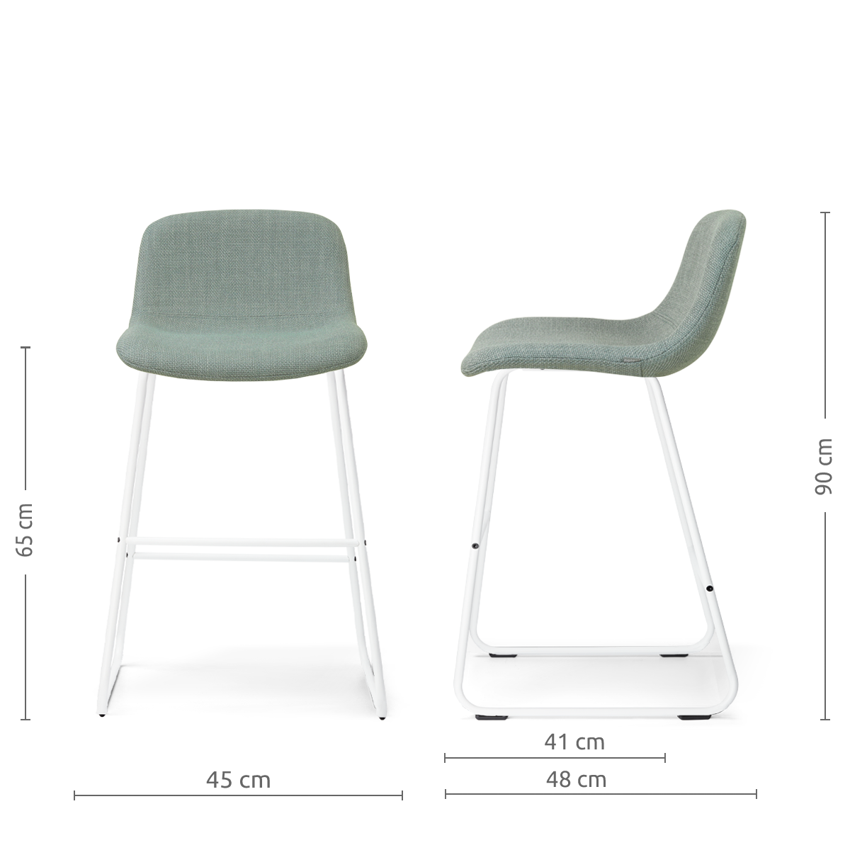 - Dankzij de zithoogte van 65 cm geschikt voor aan een kookeiland of keukenblad met een hoogte van ca. 88-95 cm