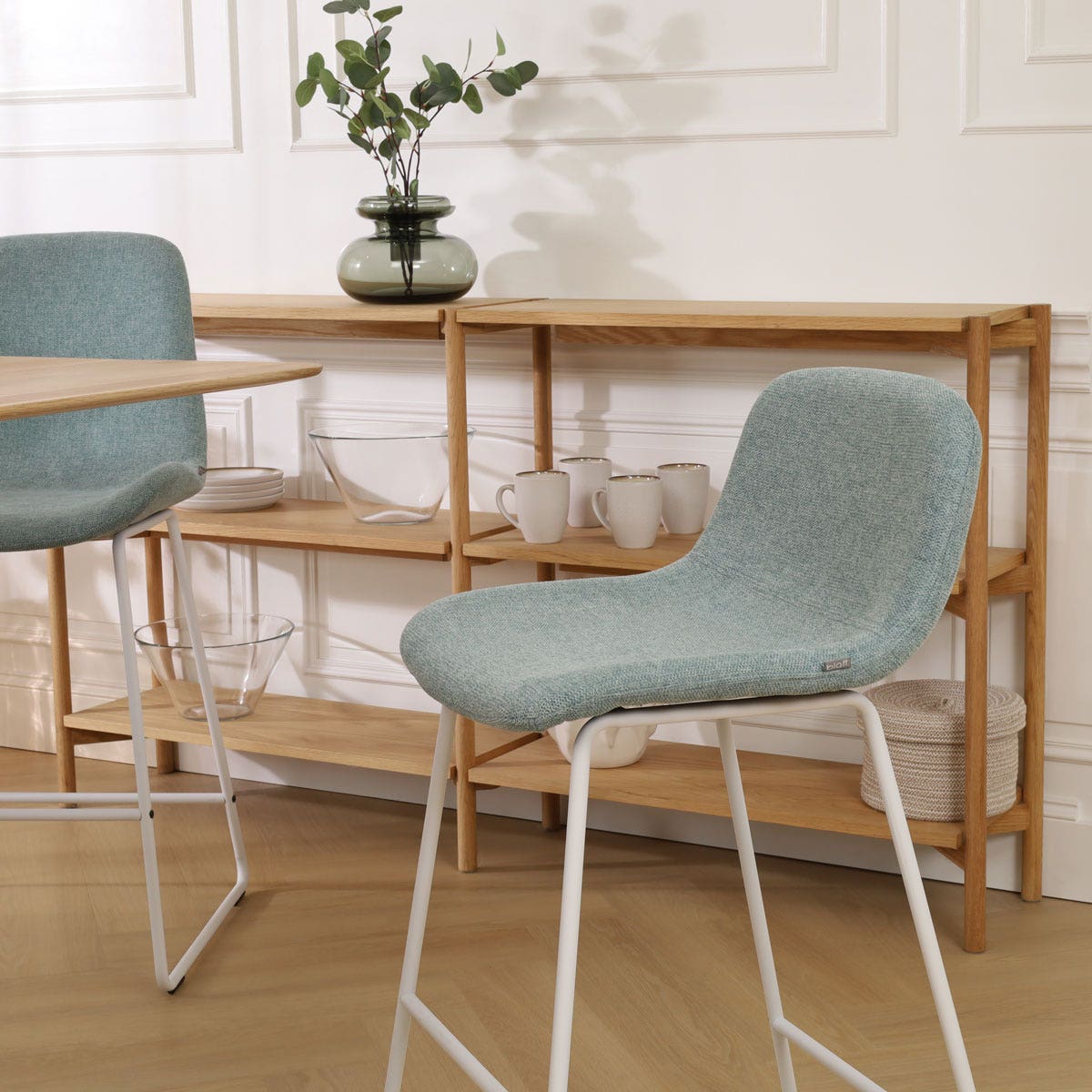 Deze tijdloze barkruk combineert een strak metalen onderstel met een gestoffeerde zitting. De zitting heeft een lage rugleuning, waardoor je een actieve zithouding hebt op deze barkruk. De stoffen bekleding zorgt ervoor dat je lekker zacht zit. Het moderne metalen onderstel met voetensteun biedt stabiliteit en geeft de barkruk een moderne uitstraling. Of je nu gaat voor een industriële look of een eigentijdse stijl in huis, de Nino-Mats barkruk is voor elk interieur een geschikte keuze. Dankzij de zithoogte van 65 cm past deze kruk perfect aan het kookeiland. Heb je een hogere barkruk nodig? De Nino-Mats barkruk is ook in een hogere uitvoering verkrijgbaar.