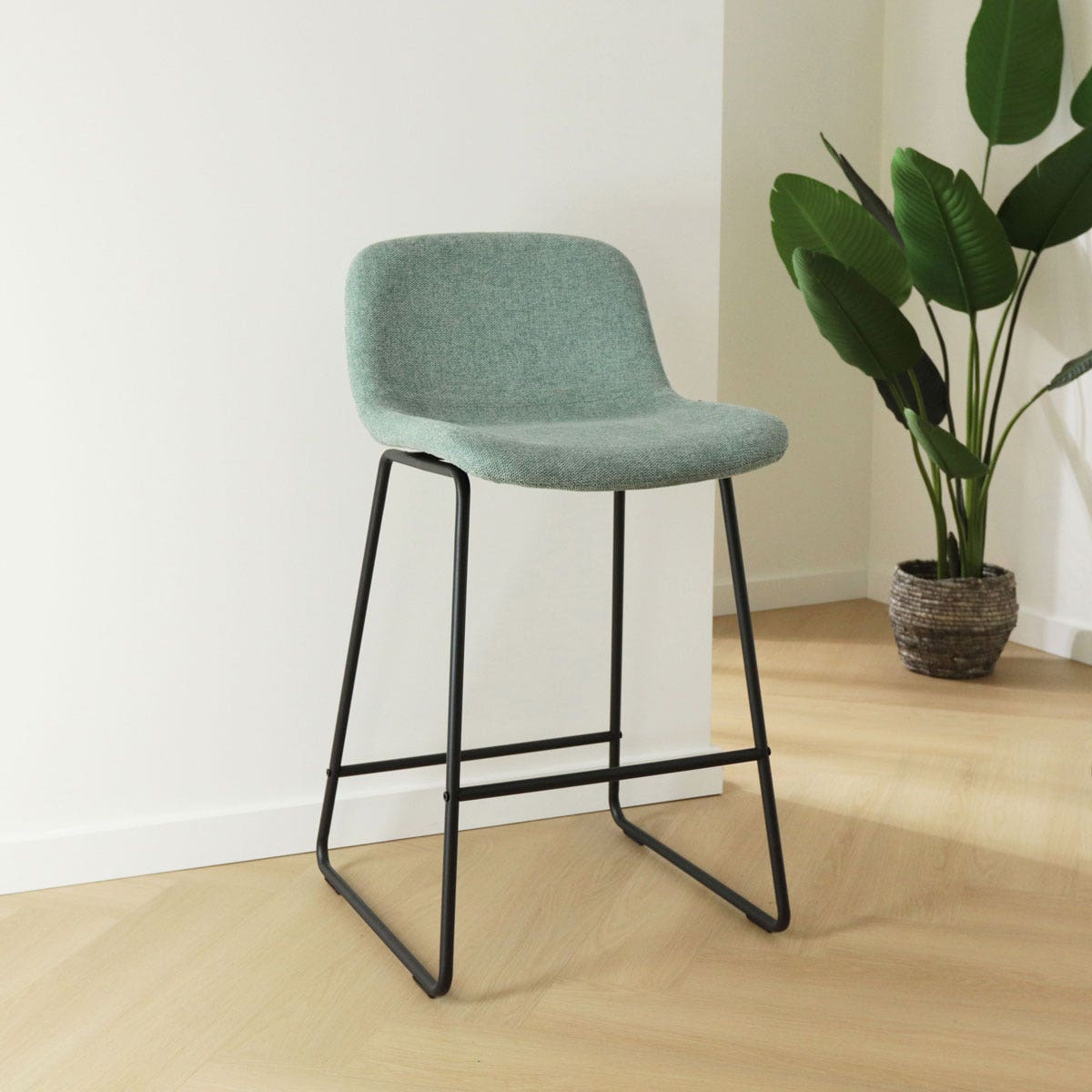Deze barkruk combineert een strak en minimalistisch metalen onderstel met een gestoffeerde zitting. De zitting heeft een lage rugleuning, waardoor je een actieve zithouding hebt op deze barkruk en de kruk het uitzicht op de bar niet belemmert. Het design zonder armleuning maakt dat deze kruk onder elke tafel of bar past, en neemt ook nog eens minder ruimte in. De stijlvolle stoffen bekleding zorgt ervoor dat je lekker zacht zit en geeft de barkruk een warme uitstraling. Of je nu gaat voor een industriële look of een eigentijdse stijl in huis, de Nino-Mats barkruk is voor elk interieur een geschikte keuze. Dankzij de zithoogte van 76 cm past deze kruk perfect aan een bar of hoge eettafel. Heb je een lagere barkruk nodig? De Nino-Mats barkruk is ook verkrijgbaar in een variant voor aan het kookeiland.