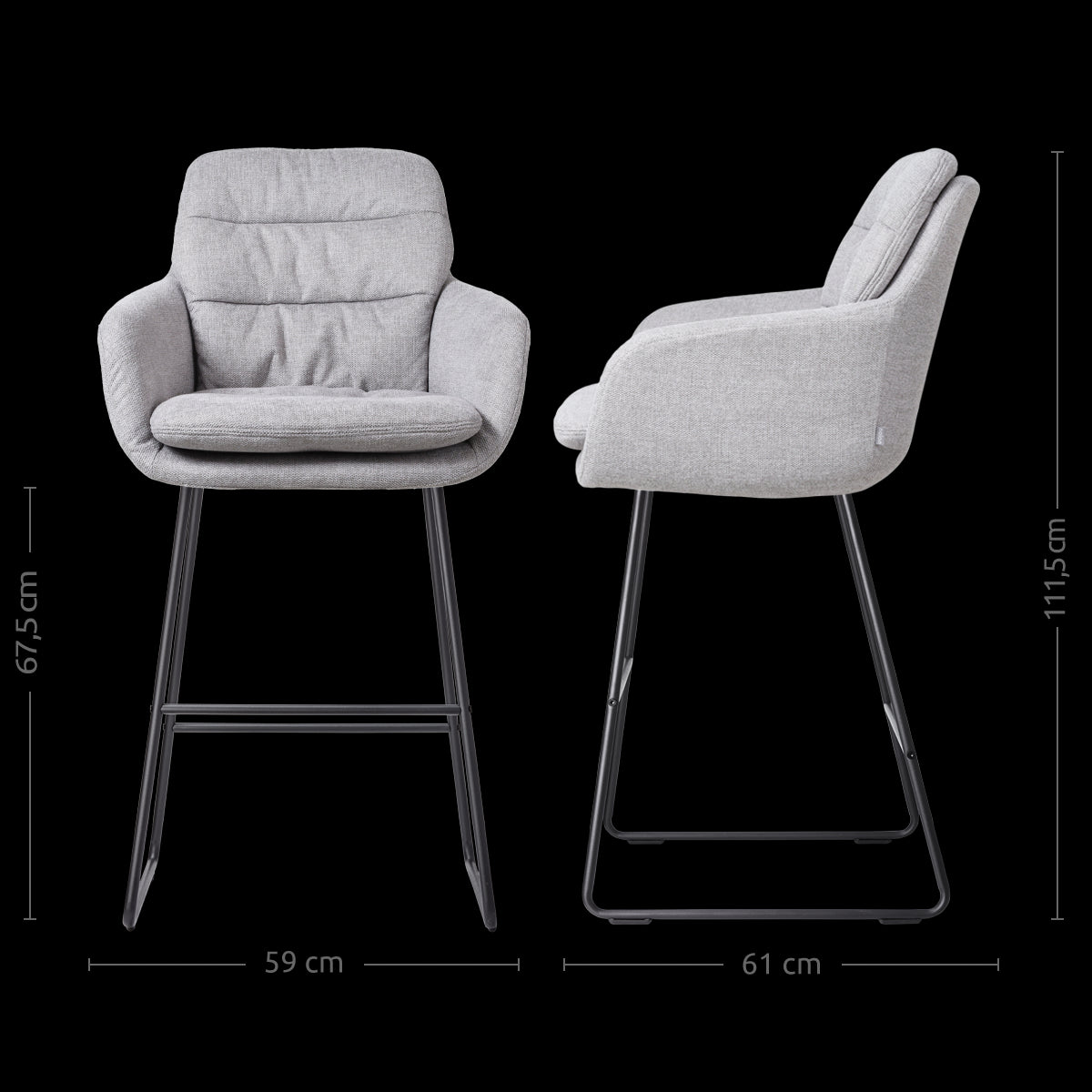 Deze barkruk zit net zo lekker als een stoel, maar dan wat hoger. De Nino-Mia barkruk heeft een metalen onderstel met slanke poten en een voetensteun. De zitting is bekleed met een stoffen bekleding die verkrijgbaar is in diverse kleuren en materialen, waaronder teddystof en ribstof. Dit zorgt voor een comfortabele zitervaring, die nog eens wordt versterkt door de extra hoge rugleuning en het vaste zitkussen. Dankzij de armleuningen kan je bovendien je armen lekker laten rusten en zit je urenlang comfortabel op deze kruk. Met een zithoogte van 67,5 cm is de Nino-Mia barkruk perfect voor aan een kookeiland. Heb je een hogere barkruk nodig? Deze barkruk is ook verkrijgbaar met een zithoogte van 77,5 cm.