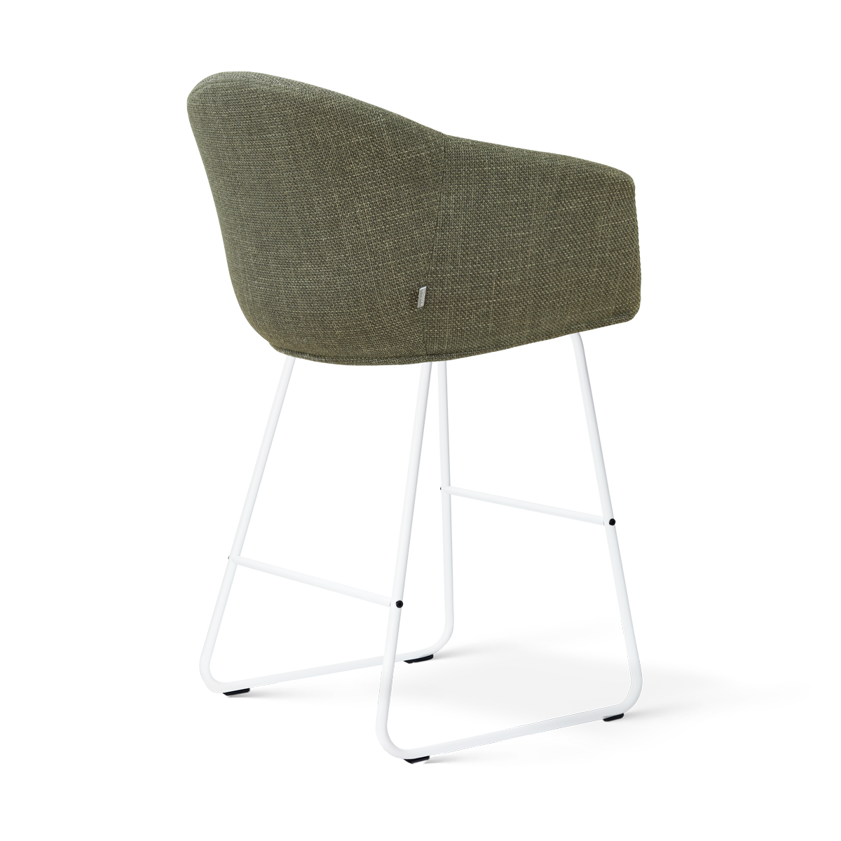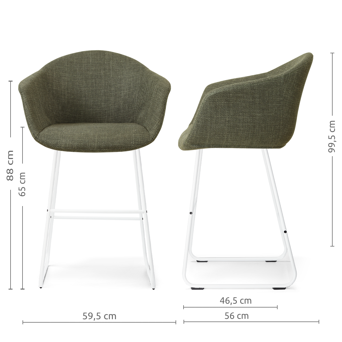 Deze kookeiland barkruk combineert een zachte stoffen zitting met een modern metalen onderstel en is daarmee een stijlvolle blikvanger in de keuken. Het metalen frame heeft een minimalistische en luchtige uitstraling. Dankzij de voetsteun op het frame heb je de keuze om je benen losjes te laten hangen of stevig neer te zetten. De ronde kuipzitting is ontworpen met armleuningen en een zachte stoffen bekleding om extra comfort te bieden terwijl je aan de bar zit. Met de zes verschillende kleuren stof kan je deze stijlvolle barkruk helemaal aan jouw interieur aanpassen, en ook het onderstel is in twee kleuren verkrijgbaar. Met een zithoogte van 65 cm is deze barkruk met armleuning geschikt voor aan een kookeiland. Zie jij jezelf al zitten met een kopje koffie?