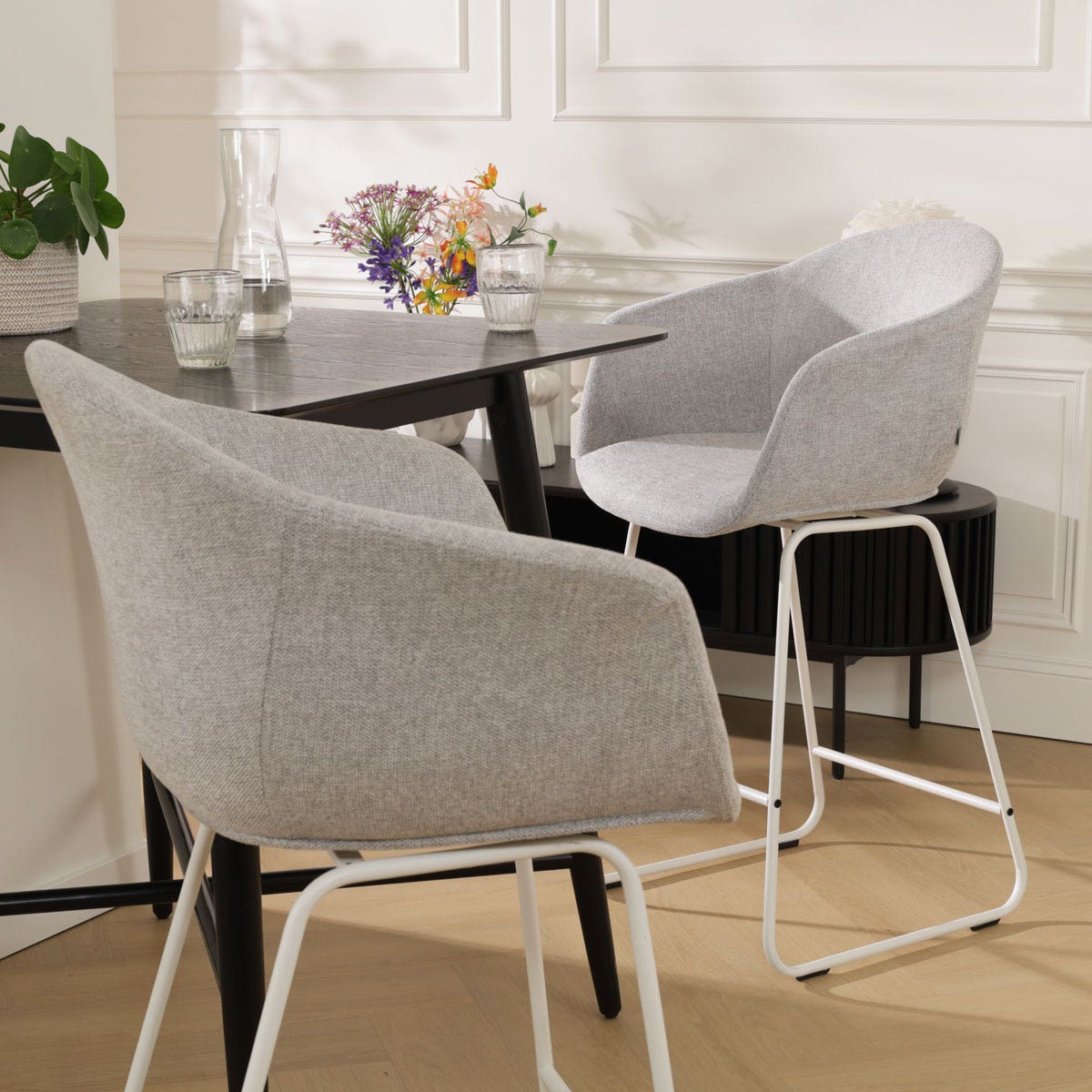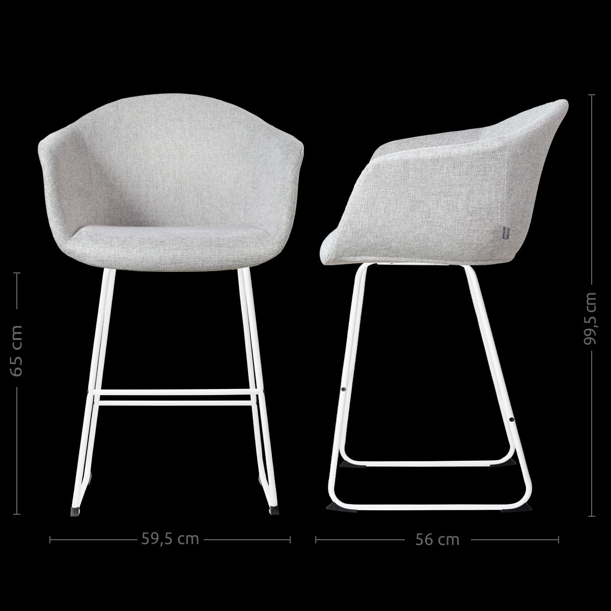 - Dankzij de zithoogte van 65 cm geschikt voor aan een kookeiland of keukenblad met een hoogte van ca. 88-95 cm