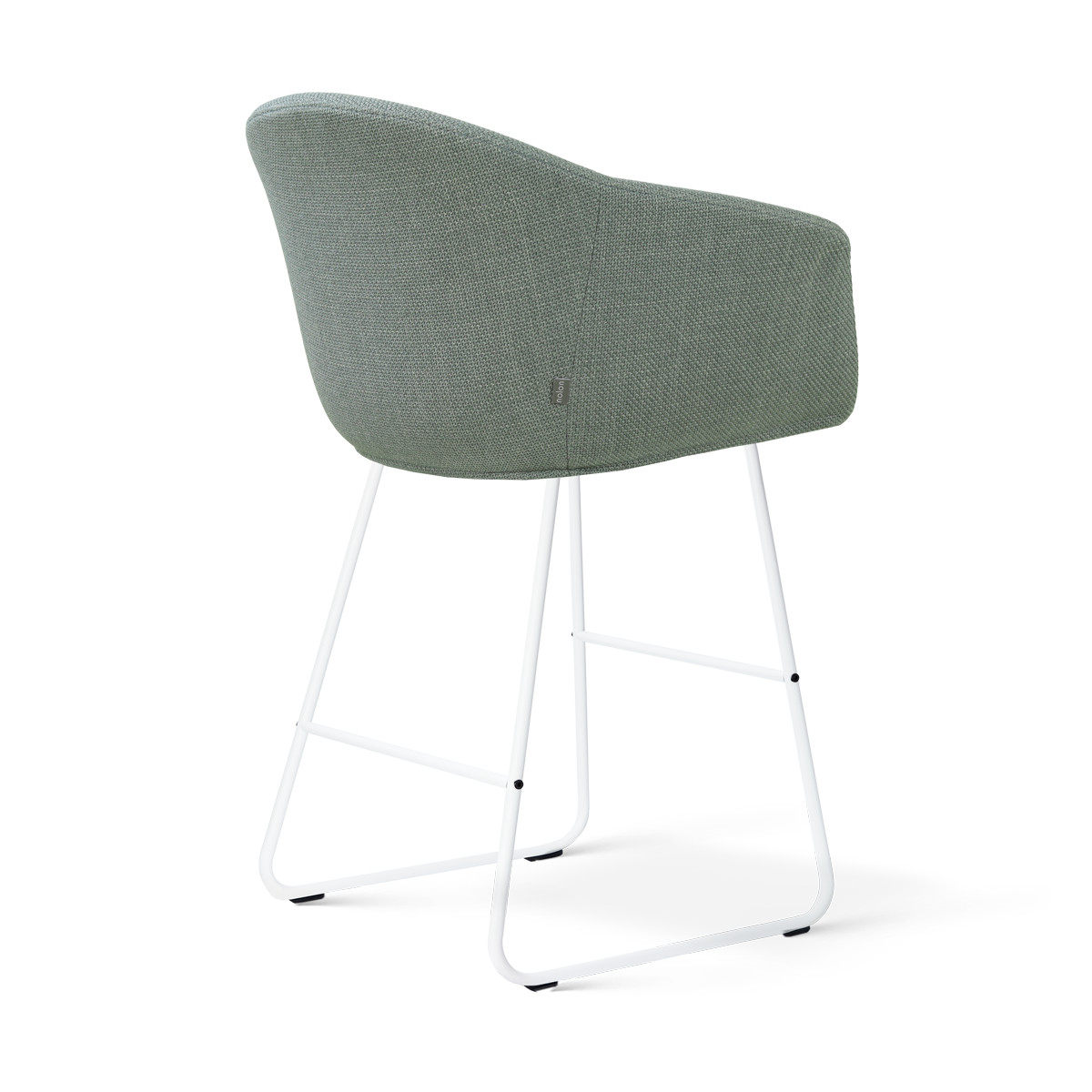 De Nino-Otis barkruk in saliegroen met wit frame brengt een natuurlijk en eigentijds gevoel in jouw keuken of kookeiland. De zachte stoffering, oplopende armleuningen en ergonomische zitting zorgen voor optimaal zitcomfort, zelfs tijdens lange koffiemomenten. Het witte metalen frame geeft een lichte, Scandinavische uitstraling en is voorzien van een stevige voetsteun. Met zijn zithoogte van 65 cm is deze barkruk perfect geschikt voor standaard kookeilanden.