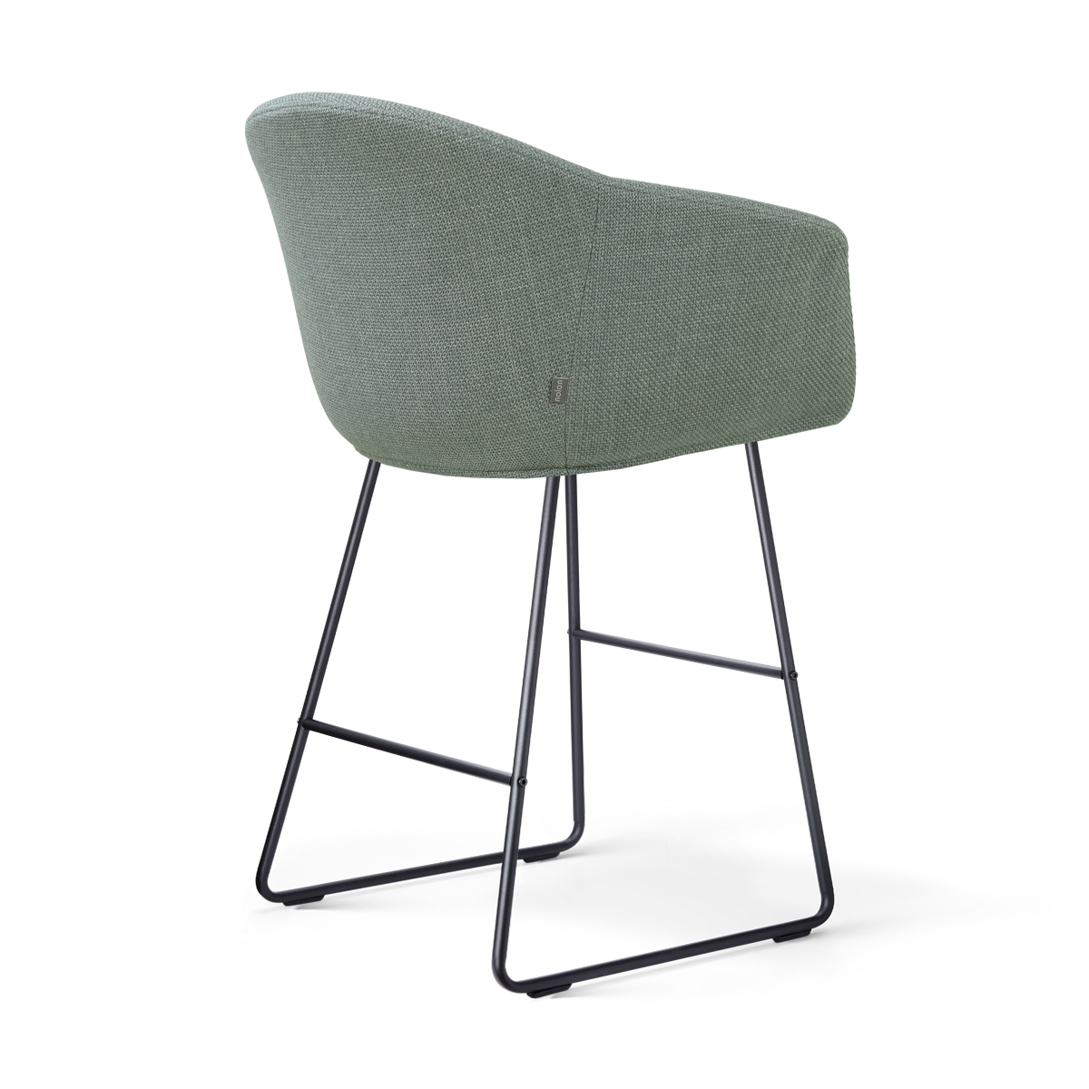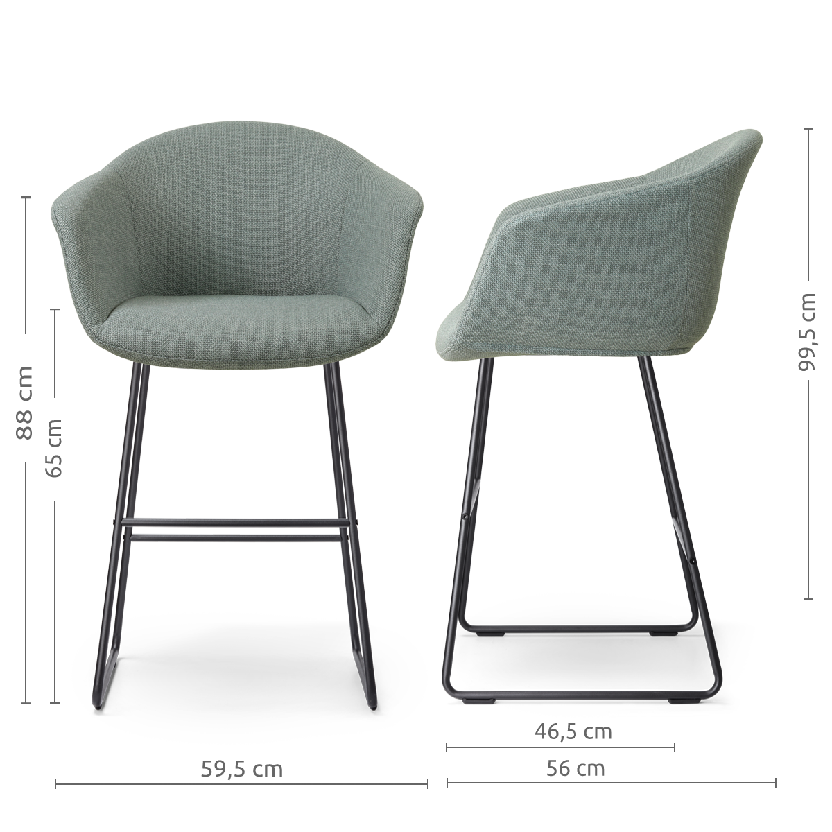 De Nino-Otis barkruk in saliegroen met zwart onderstel combineert natuurlijke zachtheid met een stoere uitstraling. De comfortabele zitting met armleuningen biedt perfecte ondersteuning, terwijl het zwarte metalen frame met voetsteun zorgt voor stabiliteit en contrast. Een stijlvolle keuze voor moderne keukens met karakter.