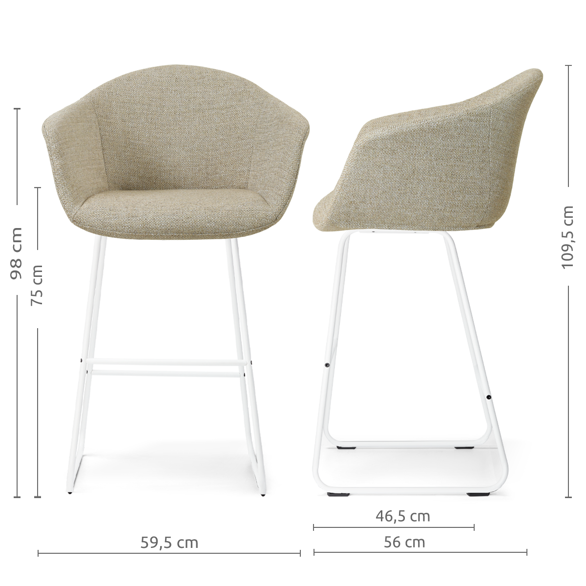 De Nino-Otis barkruk in taupe met wit onderstel straalt rust en stijl uit. De zachte stoffering en ergonomische armleuningen zorgen voor een comfortabele zitervaring, terwijl de voetsteun en stevige poten stabiliteit bieden. Het witte frame geeft een lichte, Scandinavische uitstraling, perfect voor moderne, natuurlijke of Japandi interieurs