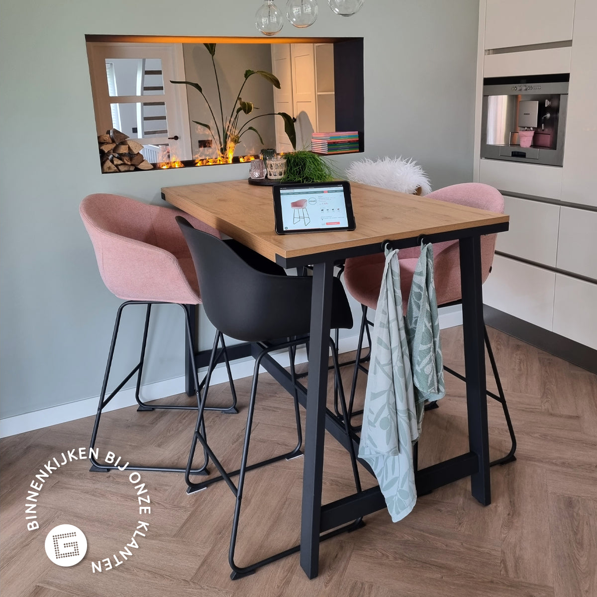 - Dankzij de zithoogte van 65 cm geschikt voor aan een kookeiland of keukenblad met een hoogte van ca. 88-95 cm