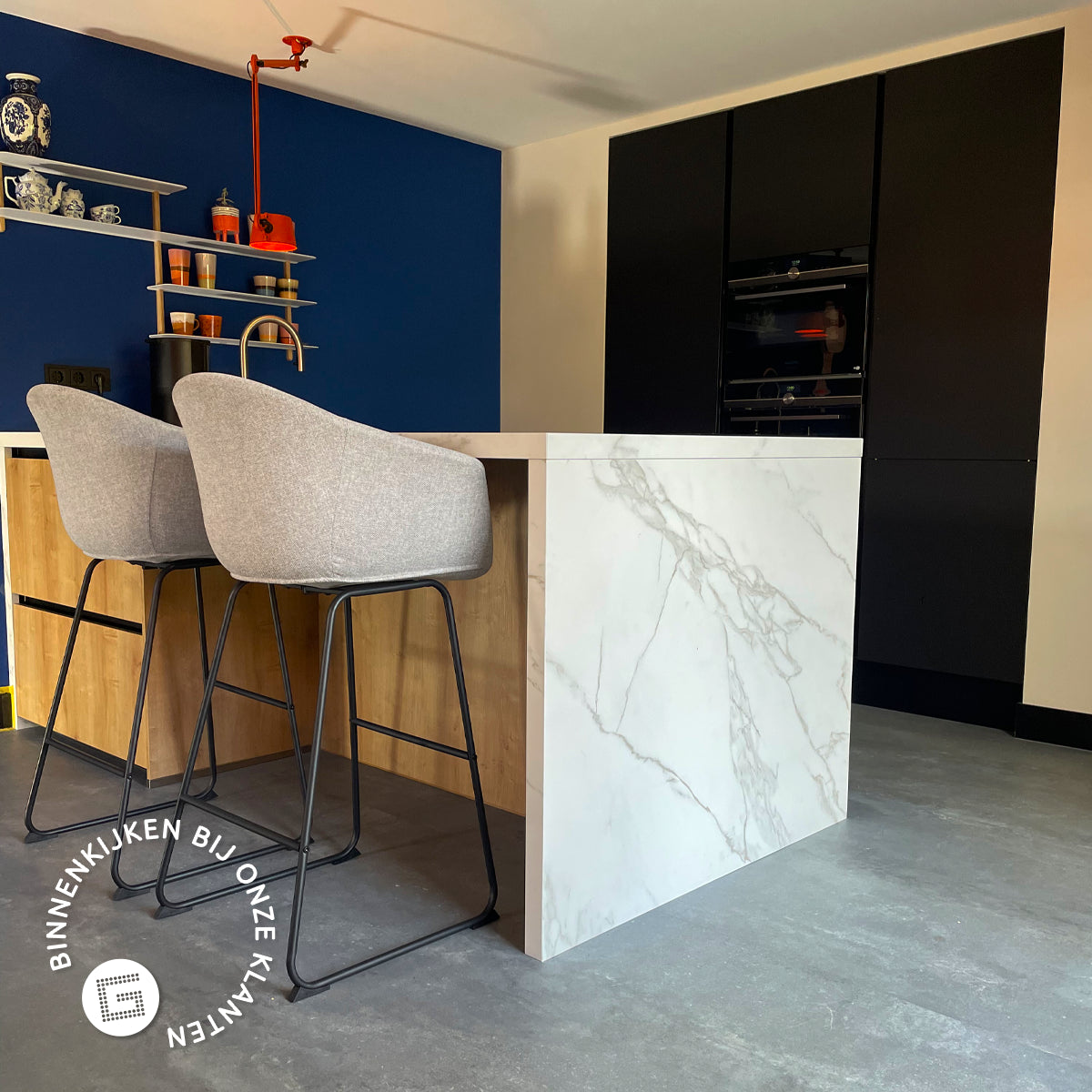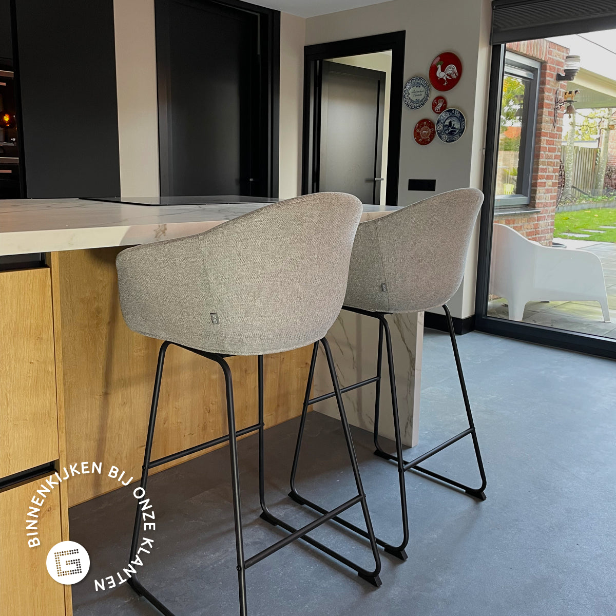 - Dankzij de zithoogte van 65 cm geschikt voor aan een kookeiland of keukenblad met een hoogte van ca. 88-95 cm