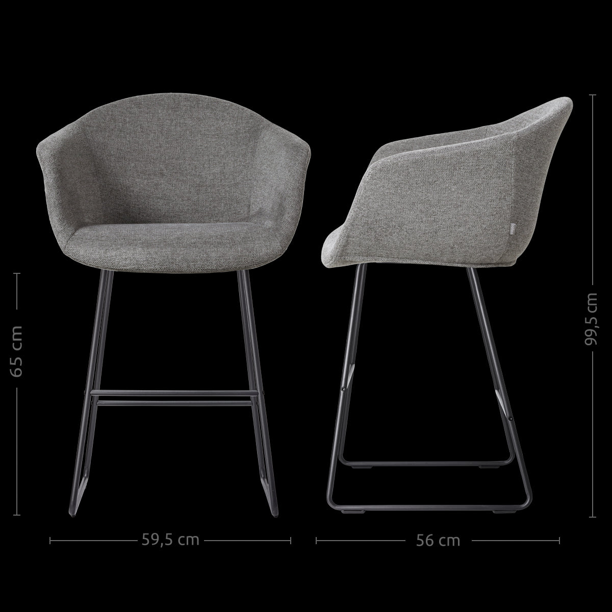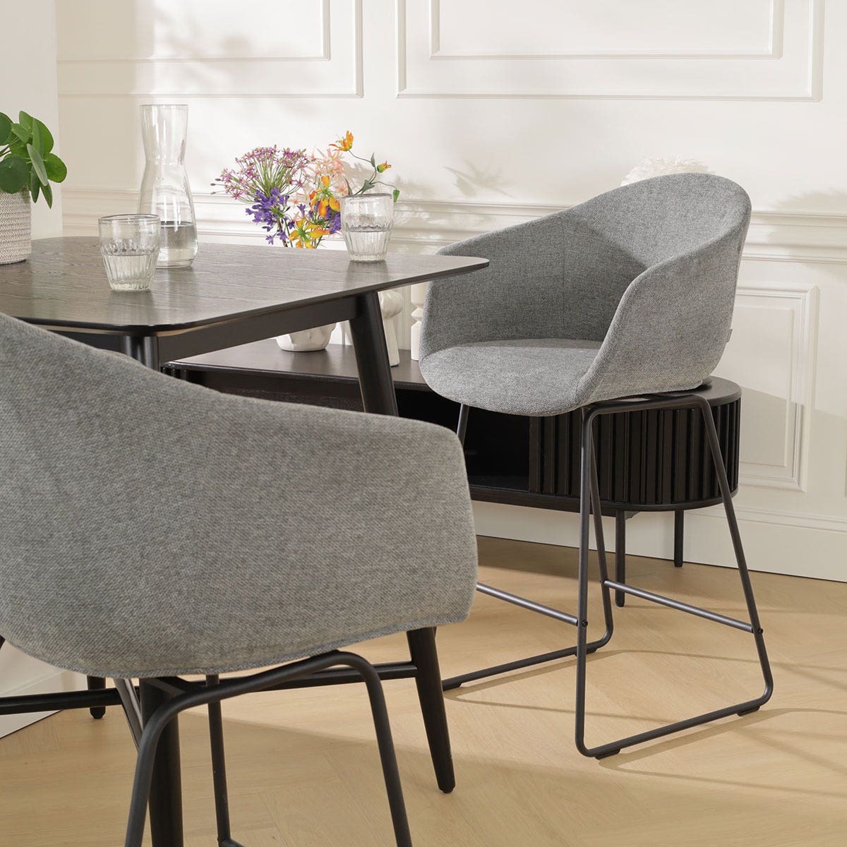 Deze kookeiland barkruk combineert een zachte stoffen zitting met een modern metalen onderstel en is daarmee een stijlvolle blikvanger in de keuken. Het metalen frame heeft een minimalistische en luchtige uitstraling. Dankzij de voetsteun op het frame heb je de keuze om je benen losjes te laten hangen of stevig neer te zetten. De ronde kuipzitting is ontworpen met armleuningen en een zachte stoffen bekleding om extra comfort te bieden terwijl je aan de bar zit. Met de zes verschillende kleuren stof kan je deze stijlvolle barkruk helemaal aan jouw interieur aanpassen, en ook het onderstel is in twee kleuren verkrijgbaar. Met een zithoogte van 65 cm is deze barkruk met armleuning geschikt voor aan een kookeiland. Zie jij jezelf al zitten met een kopje koffie?