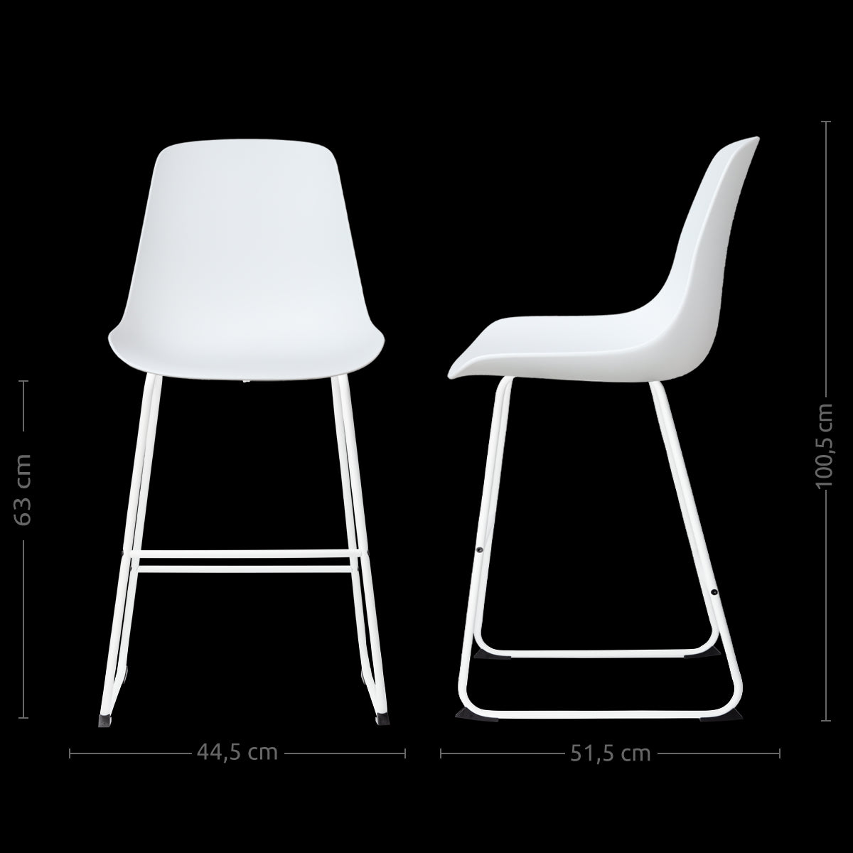 - Dankzij de zithoogte van 63 cm geschikt voor aan een kookeiland of keukenblad met een hoogte van ca. 88-95 cm