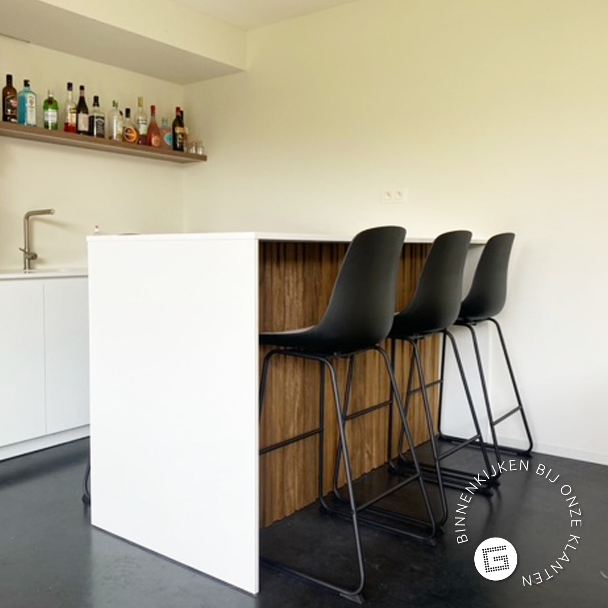 - Een barkruk zonder armleuning past altijd onder het blad en neemt minder ruimte in
