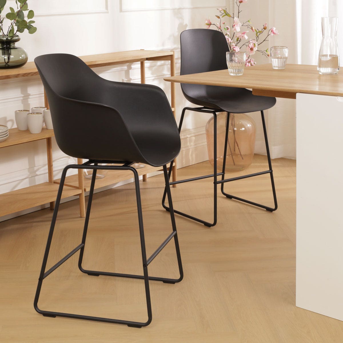 Met zijn strakke Scandinavische design biedt deze barkruk niet alleen een comfortabele zitplek, maar ook een elegante uitstraling. De kunststof zitting met armleuningen zorgt voor extra comfort, terwijl het stevige metalen onderstel met zwarte poten bijdraagt aan de duurzaamheid van de kruk. Deze niet-draaibare barkruk heeft een totale hoogte van 108,5 cm en een zithoogte van 73 cm, waardoor hij ideaal is voor gebruik aan een bar of kookeiland. De zitdiepte van 46 cm biedt voldoende ruimte om ontspannen te zitten, terwijl de stevige constructie van de barkruk zorgt voor een lange levensduur. Of je nu een modern interieur hebt of een industriële look wilt creëren, de Nino-Puk barkruk past perfect bij je inrichting.