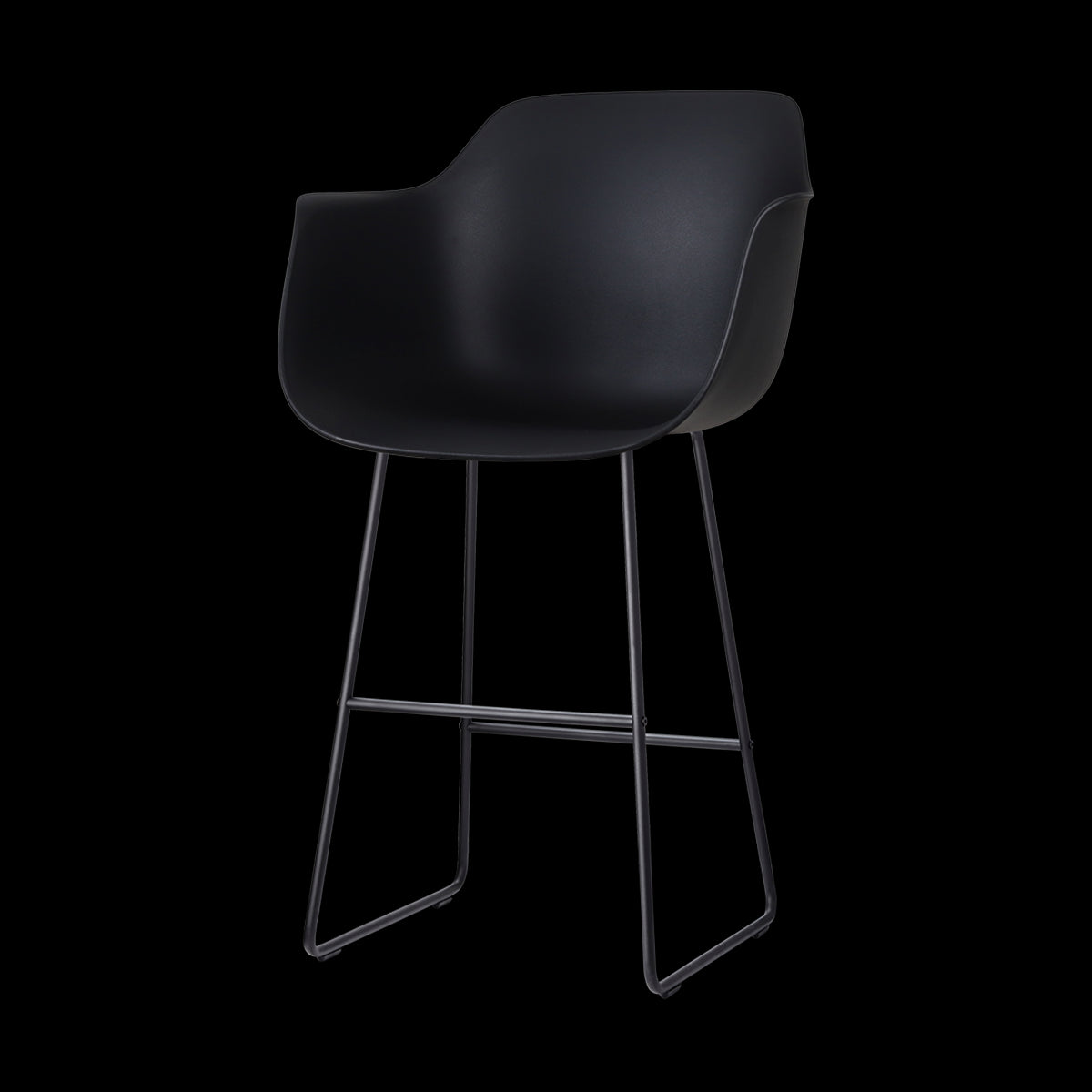 - Deze barkruk heeft oplopende armleuningen, wat een stijlvol ontwerp is. Controleer wel even of ze onder je tafel passen om te voorkomen dat ze in de weg zitten.