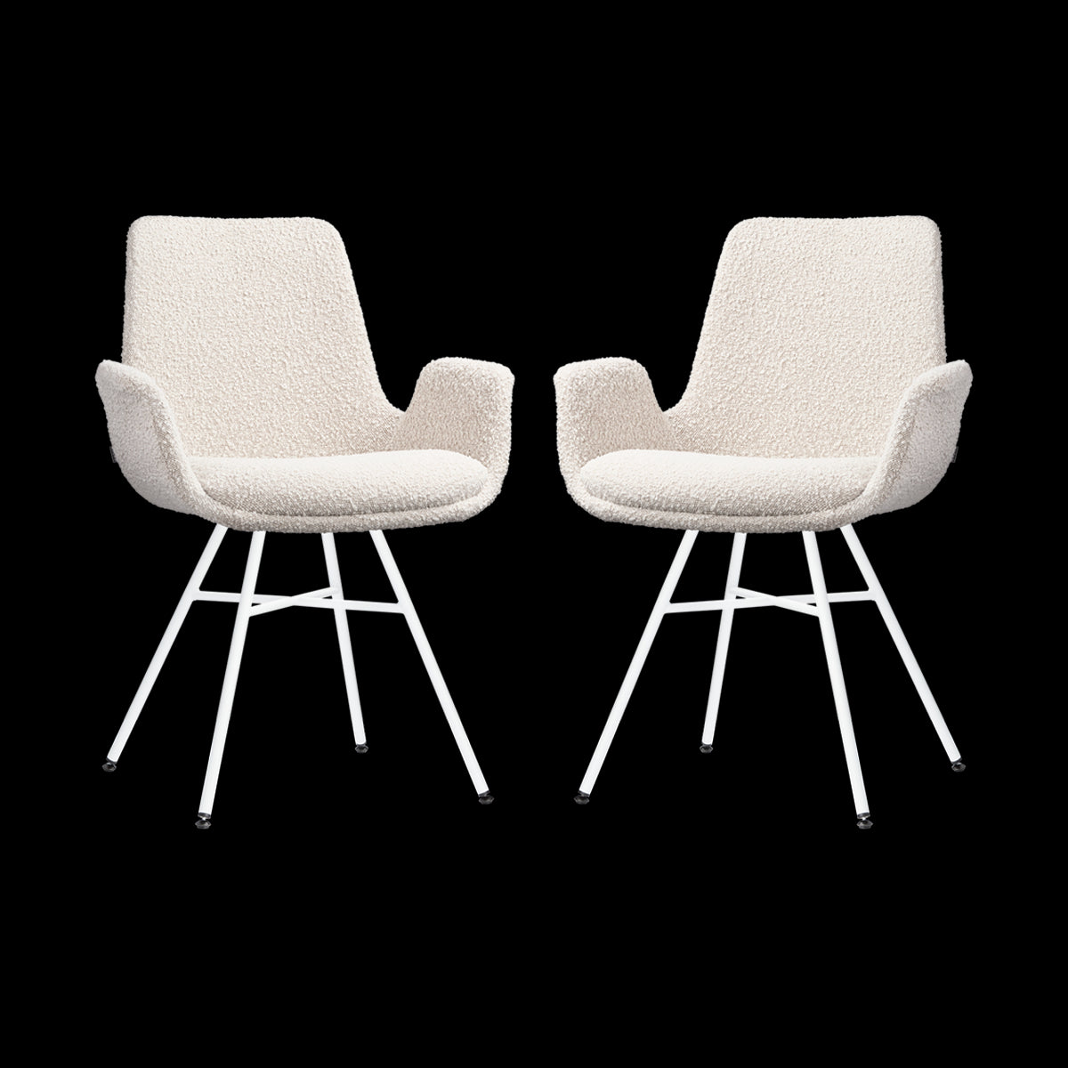Creëer een gezellige eethoek met de set van twee moderne Noa-Eef eetkamerstoelen met armleuningen van Nolon.