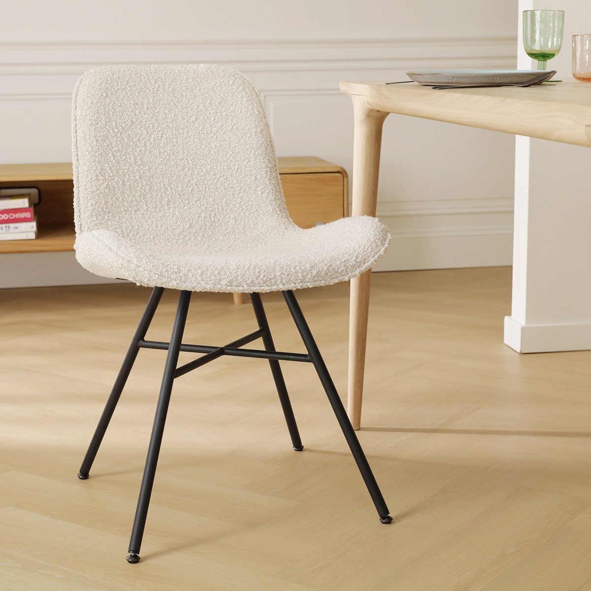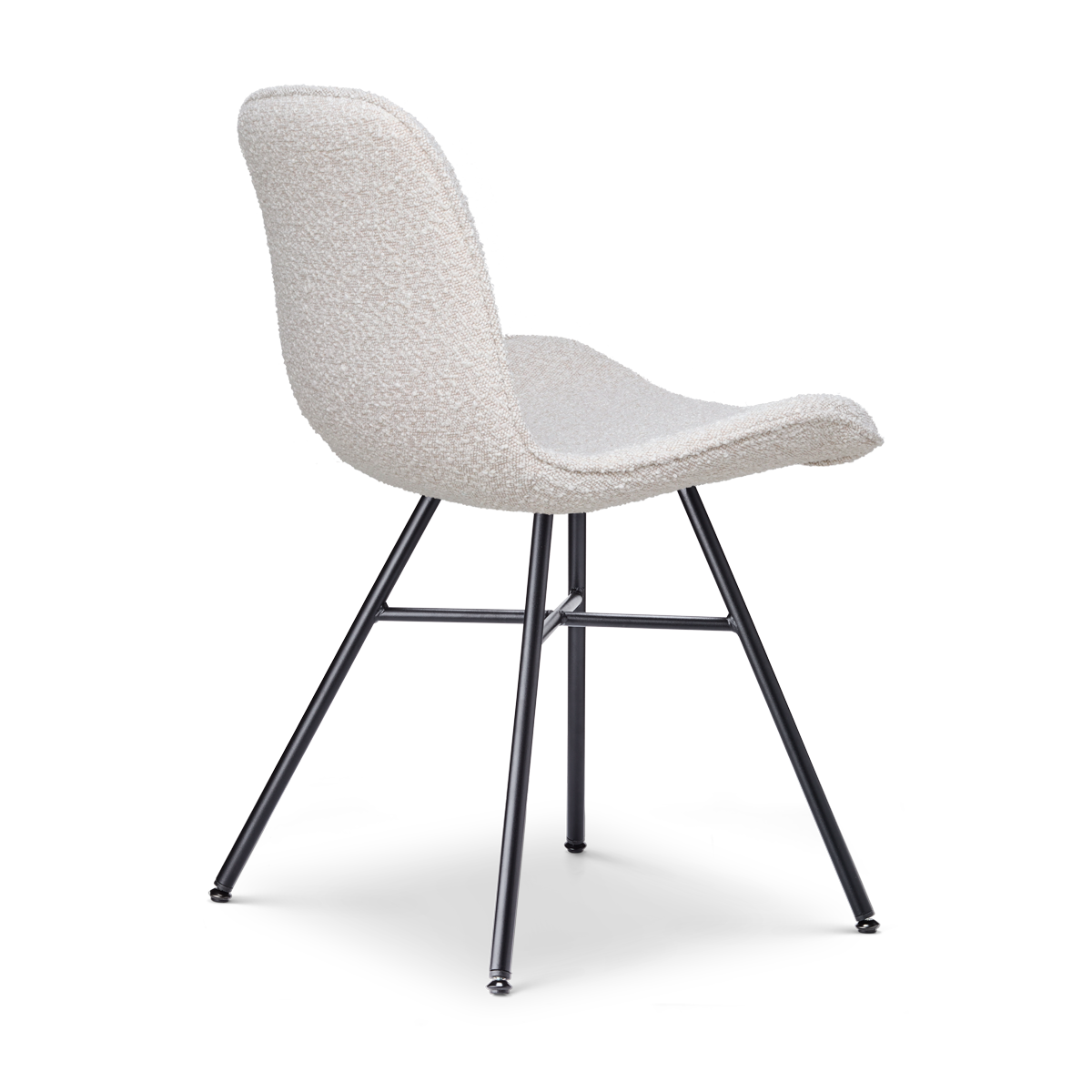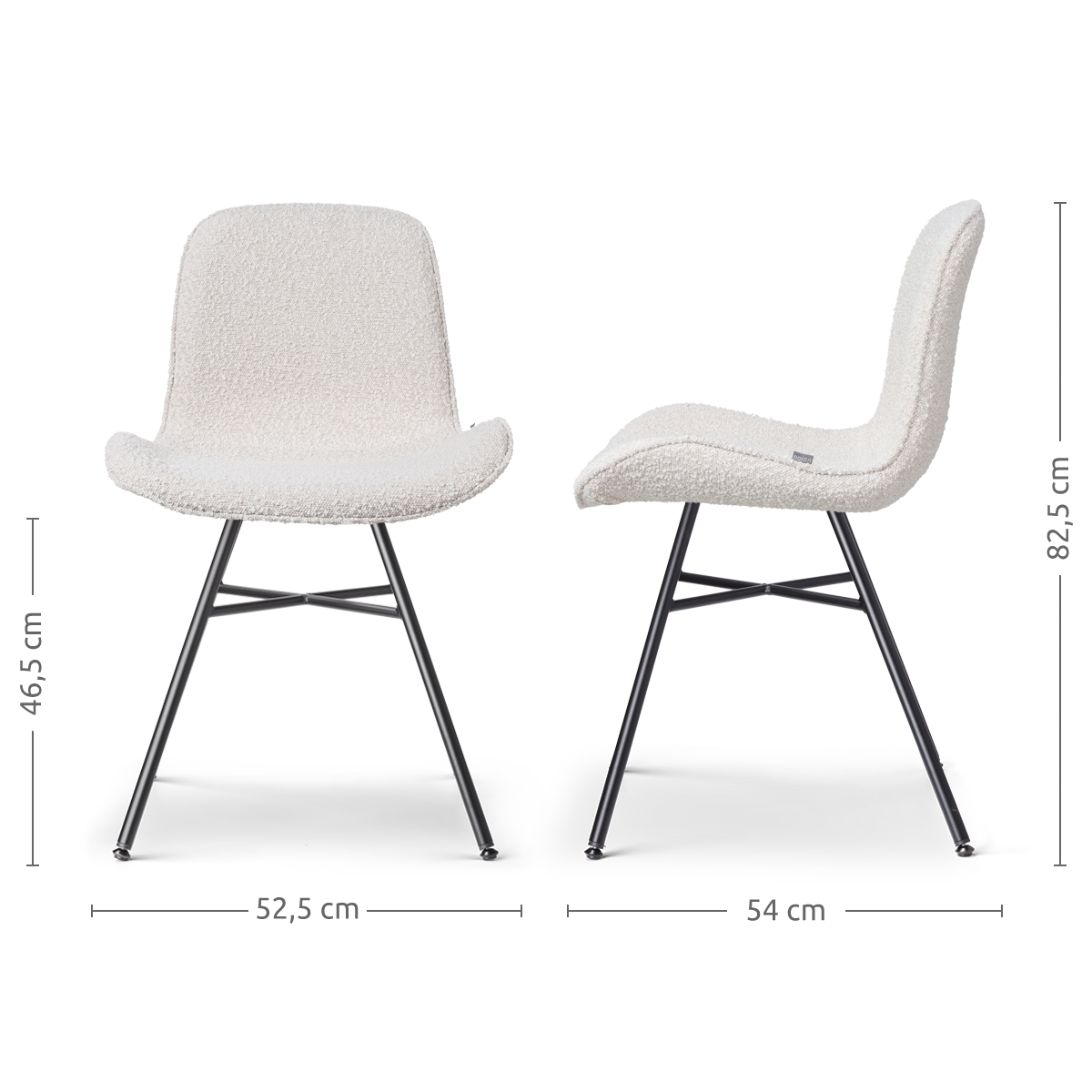 De zitting van deze eetkamerstoel heeft comfortabele rondingen en een gevleugeld zitvlak voor extra comfort. Het sterke houten binnenwerk zorgt voor een stevige zit en een actieve zithouding aan de eettafel. Het strakke, moderne onderstel is gemaakt van metaal en heeft een kruisverbinding tussen de poten. De voetpootjes aan het einde van de poten zijn verstelbaar zodat de stoel op elke ondergrond stevig staat. De Noa-Fé eetkamerstoel is bekleed met zachte, hoogwaardige stof en is verkrijgbaar in maar liefst zeven verschillende kleuren en materialen. Of je nu op zoek bent naar een tijdloze beige eetkamerstoel of een trendy exemplaar met bouclé of teddystof, de Noa-Fé stoel is altijd een goede keuze.