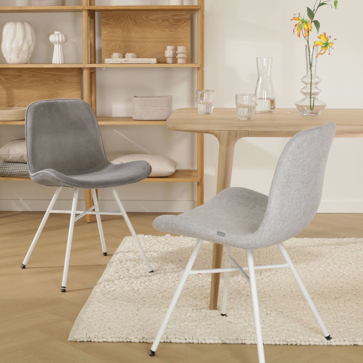- De ribstof en teddystof bekleding zorgt voor een trendy touch in de eethoek