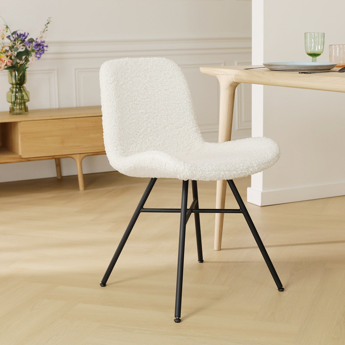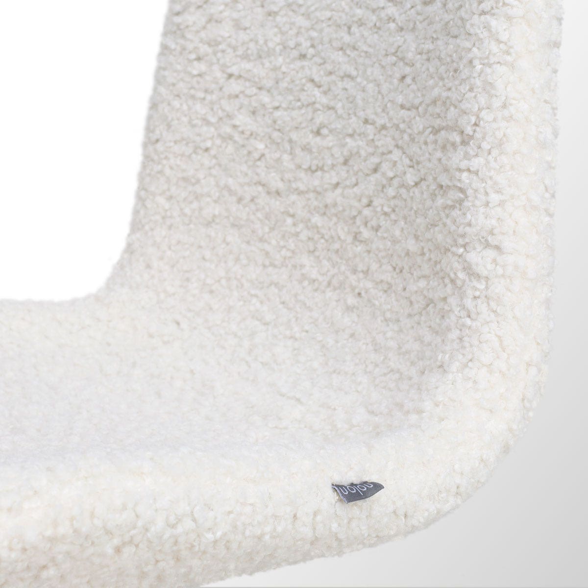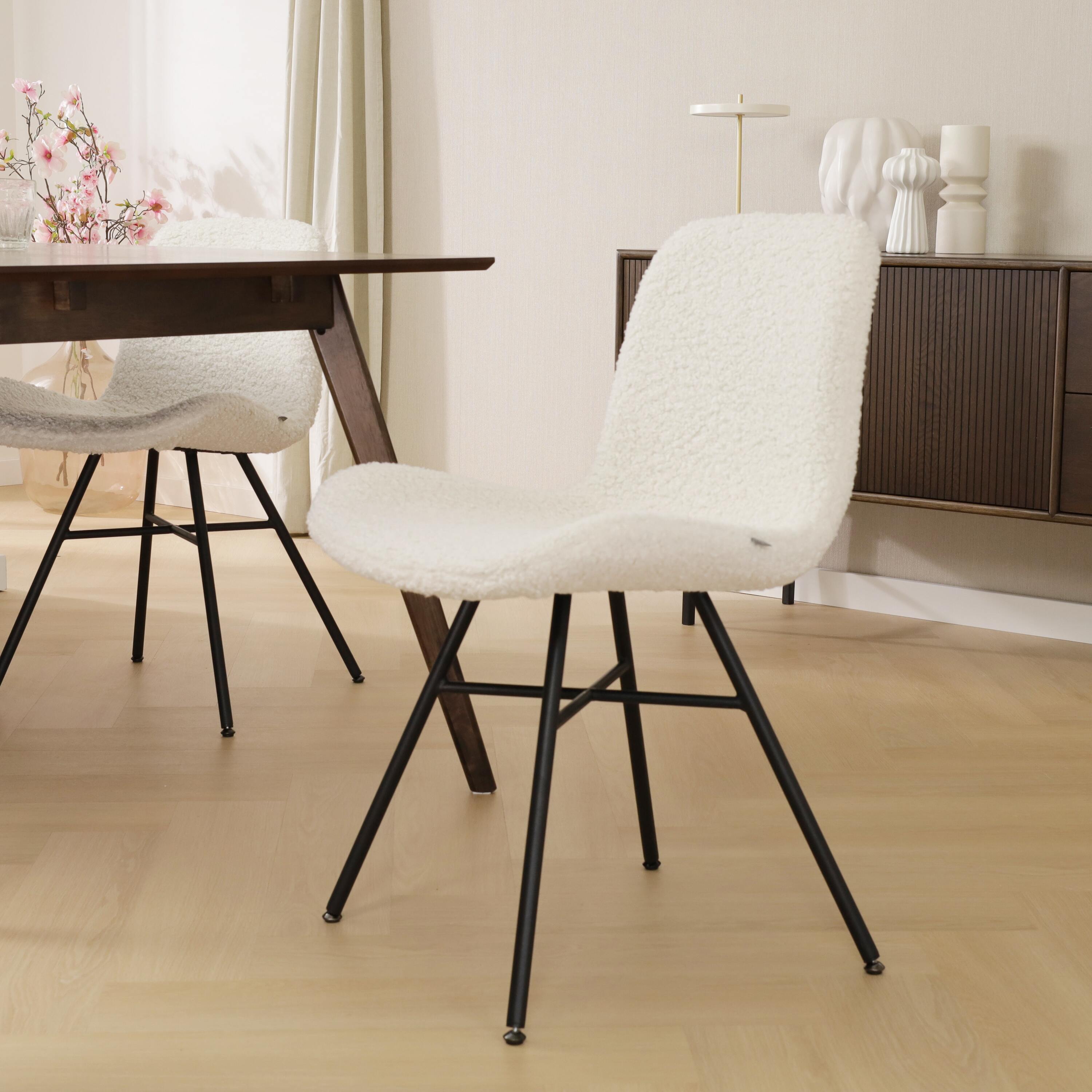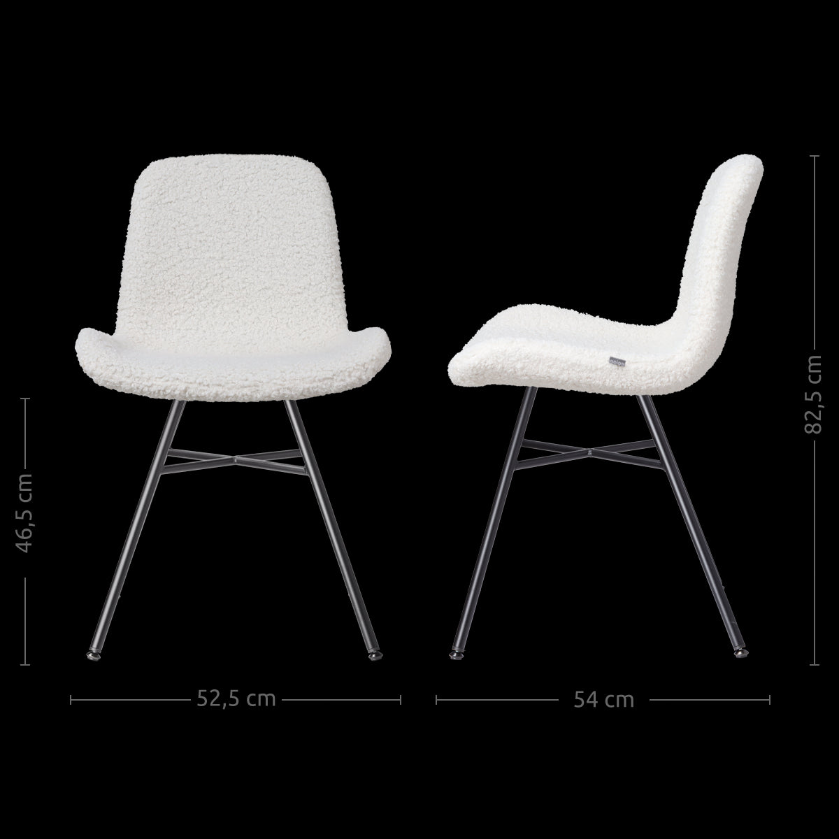 De gestoffeerde zitting is verkrijgbaar in een hoogwaardige kwaliteit stoffen. Bovendien heeft de zitting comfortabele rondingen en korte opstaande leuningen, voor nog meer comfort. De eetkamerstoel is afgewerkt met een zwart metalen onderstel en een leuk detail is het kruis in het midden. Kortom, zoek je een comfortabele eetkamerstoel waar je niet meer uit wilt? Dan is deze stoel wellicht iets voor jou!