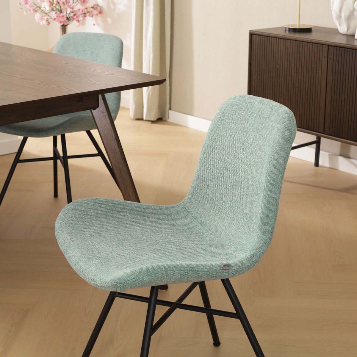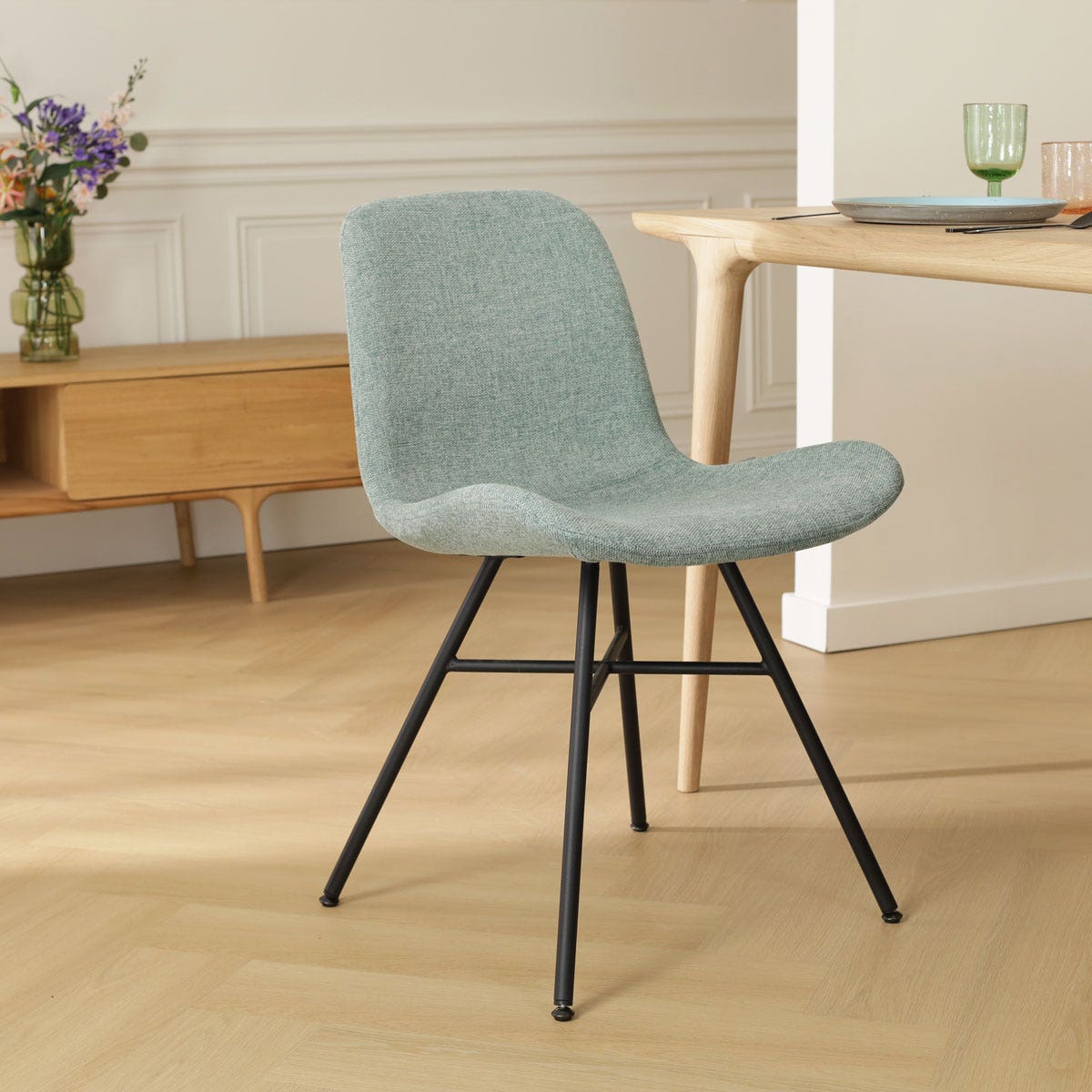 De zitting van deze eetkamerstoel heeft comfortabele rondingen en een gevleugeld zitvlak voor extra comfort. Het sterke houten binnenwerk zorgt voor een stevige zit en een actieve zithouding aan de eettafel. Het strakke, moderne onderstel is gemaakt van metaal en heeft een kruisverbinding tussen de poten. De voetpootjes aan het einde van de poten zijn verstelbaar zodat de stoel op elke ondergrond stevig staat. De Noa-Fé eetkamerstoel is bekleed met zachte, hoogwaardige stof en is verkrijgbaar in maar liefst zeven verschillende kleuren en materialen. Of je nu op zoek bent naar een tijdloze beige eetkamerstoel of een trendy exemplaar met bouclé of teddystof, de Noa-Fé stoel is altijd een goede keuze.