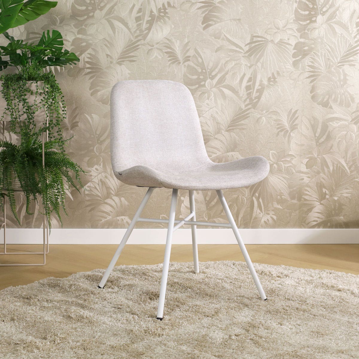 De zitting van deze eetkamerstoelen heeft comfortabele rondingen en een gevleugeld zitvlak voor extra comfort. Het sterke houten binnenwerk zorgt voor een stevige zit en een actieve zithouding aan de eettafel. Het strakke, moderne onderstel is gemaakt van metaal en heeft een kruisverbinding tussen de poten. De voetpootjes aan het einde van de poten zijn verstelbaar zodat de stoel op elke ondergrond stevig staat. De Noa-Fé eetkamerstoel is bekleed met zachte, hoogwaardige stof en is verkrijgbaar in maar liefst zeven verschillende kleuren en materialen. Of je nu op zoek bent naar een tijdloze beige eetkamerstoel of een trendy exemplaar met ribstof of teddystof, de Noa-Fé stoel is altijd een goede keuze.