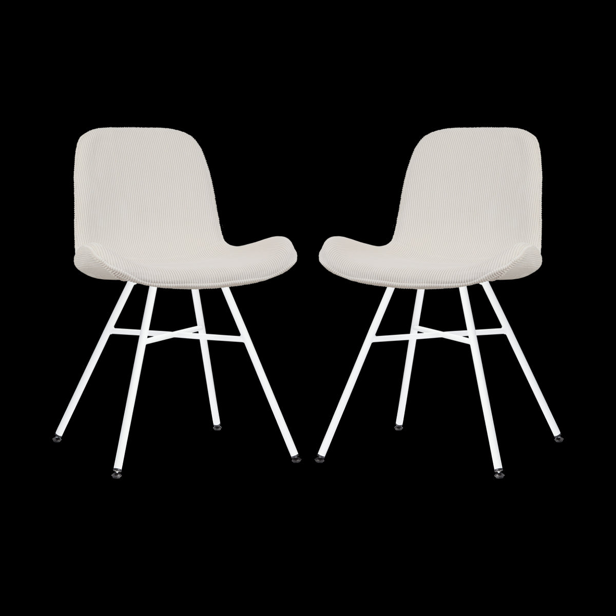 De zitting van deze eetkamerstoelen heeft comfortabele rondingen en een gevleugeld zitvlak voor extra comfort. Het sterke houten binnenwerk zorgt voor een stevige zit en een actieve zithouding aan de eettafel. Het strakke, moderne onderstel is gemaakt van metaal en heeft een kruisverbinding tussen de poten. De voetpootjes aan het einde van de poten zijn verstelbaar zodat de stoel op elke ondergrond stevig staat. De Noa-Fé eetkamerstoel is bekleed met zachte, hoogwaardige stof en is verkrijgbaar in maar liefst zeven verschillende kleuren en materialen. Of je nu op zoek bent naar een tijdloze beige eetkamerstoel of een trendy exemplaar met ribstof of teddystof, de Noa-Fé stoel is altijd een goede keuze.