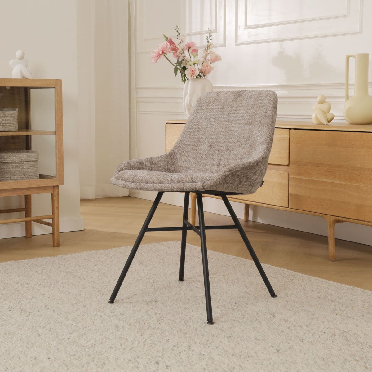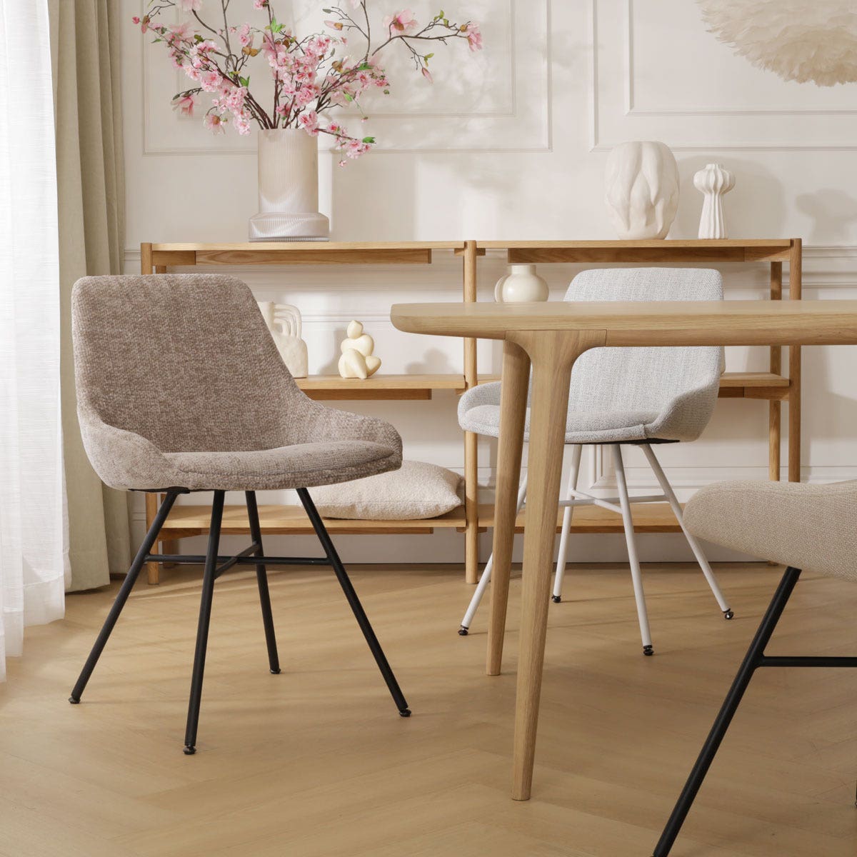 De Noa-Isa eetkamerstoel bruin - zwart onderstel is onderdeel van een mix en match collectie. Dit betekent dat zowel het onderstel als de zitting van deze stoel in diverse andere combinaties verkrijgbaar zijn. Zo is de stoel met een wit onderstel en een zwart onderstel verkrijgbaar in de kleuren bouclé beige, bouclé taupe, beige, warm grijs, groen, bruin, en beige gemêleerd. Hierdoor kun je eenvoudig de variant kiezen die het beste bij jouw interieur past.