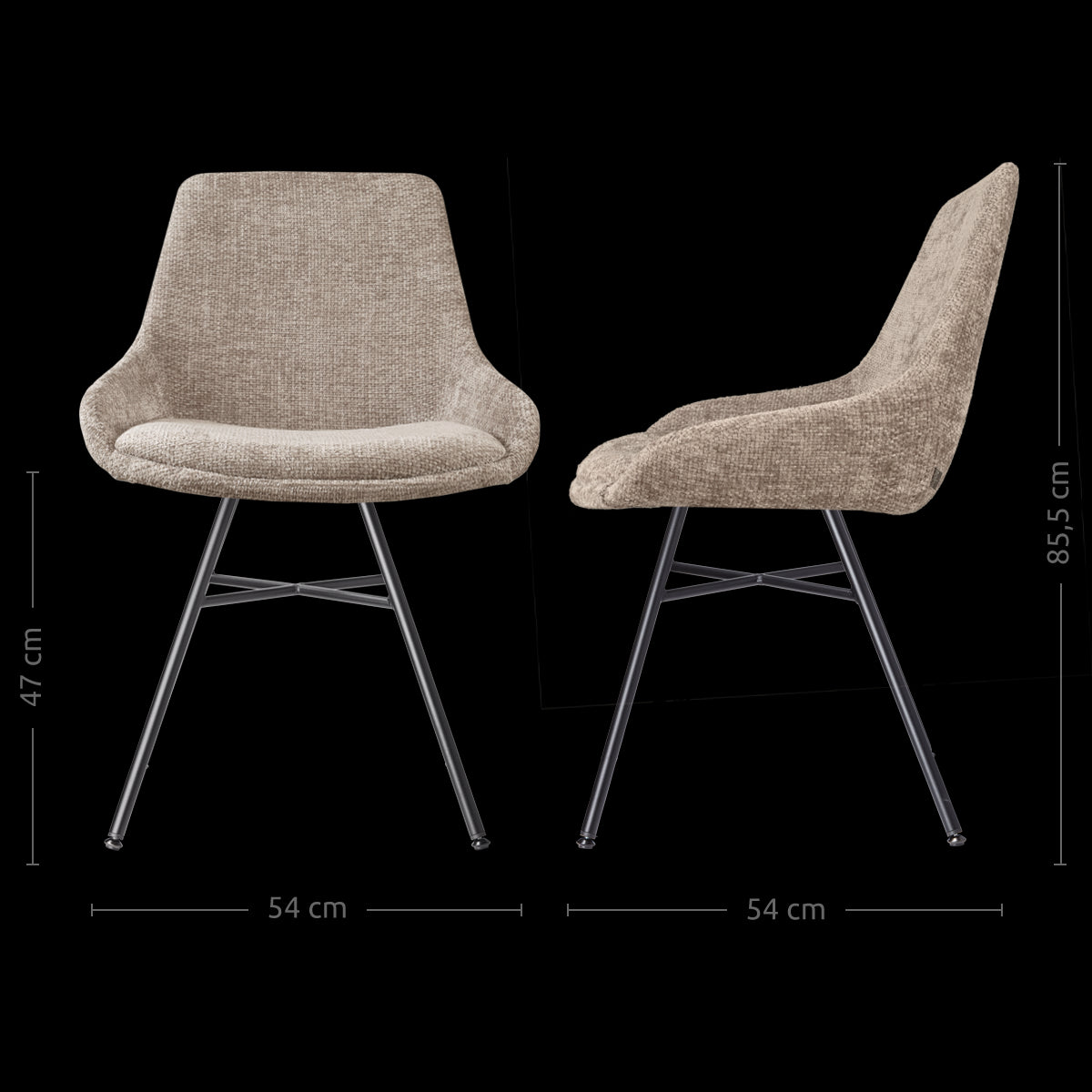 Deze stoel zonder armleuningen biedt een eigentijds ontwerp met hotel chique uitstraling, ideaal voor zowel klassieke als moderne interieurs. Het metalen frame met zwarte poten zorgt voor stabiliteit, terwijl de volledig gestoffeerde bruine zitting met luxe stoffen bekleding ultiem comfort biedt. De stoel is 85,5 cm hoog, heeft een zithoogte van 47 cm en een zitdiepte van 40 cm, waardoor hij perfect past aan elke eettafel. Dankzij het kruisvormige onderstel is de Noa-Isa stoel niet alleen elegant maar ook duurzaam. Bovendien is hij zeer eenvoudig in elkaar te zetten met de meegeleverde instructies, zonder dat hiervoor gespecialiseerd gereedschap nodig is. Of je nu een gezellig diner organiseert of een rustige avond aan de eettafel doorbrengt, de bruine Noa-Isa eetkamerstoel met zwarte poten biedt de perfecte balans tussen stijl en functionaliteit.