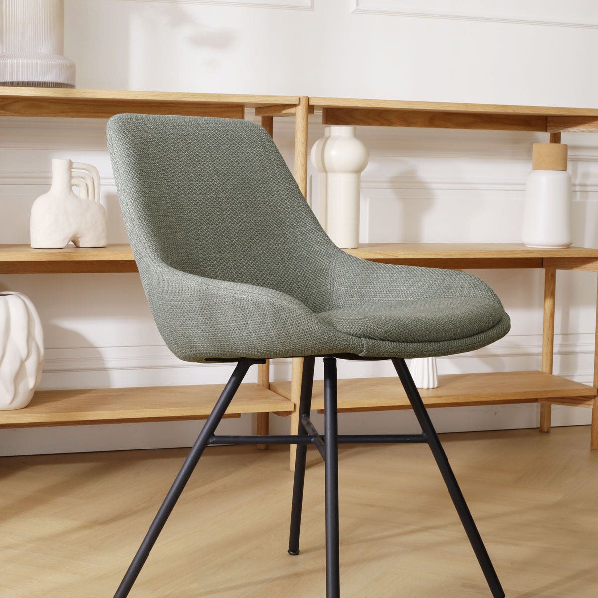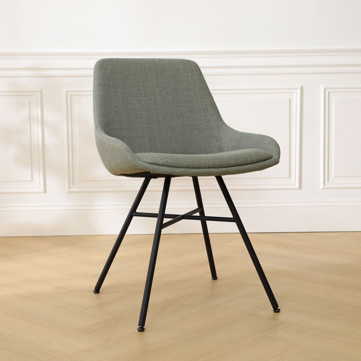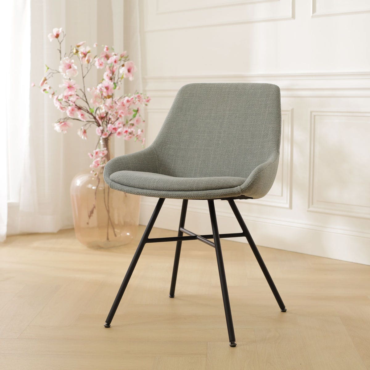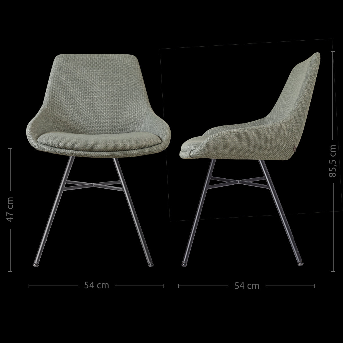 Deze stoel zonder armleuningen heeft een strak en stoer ontwerp, met een stevig zwart metalen onderstel dat een lange levensduur garandeert. De zitting is bekleed met hoogwaardig textiel in een prachtige saliegroene kleur, wat zorgt voor comfort en een luxe uitstraling. Dankzij het ontwerp zonder armleuningen kan de stoel gemakkelijk onder elke tafel worden geschoven, waardoor hij ideaal is voor kleinere ruimtes. Met een zithoogte van 47 cm en een zitdiepte van 40 cm biedt de stoel een comfortabele zitervaring. De Noa-Isa is zeer eenvoudig in elkaar te zetten en komt met een garantie van 1 jaar op fabrieksfouten. Deze eetkamerstoel, met zijn volledig gestoffeerde zitting en metalen poten, is verkrijgbaar in verschillende kleuren en materialen, zodat hij past in zowel industriële als landelijke interieurs. De stoel is 85,5 cm hoog, wat hem een perfecte aanvulling maakt op elke eetruimte.