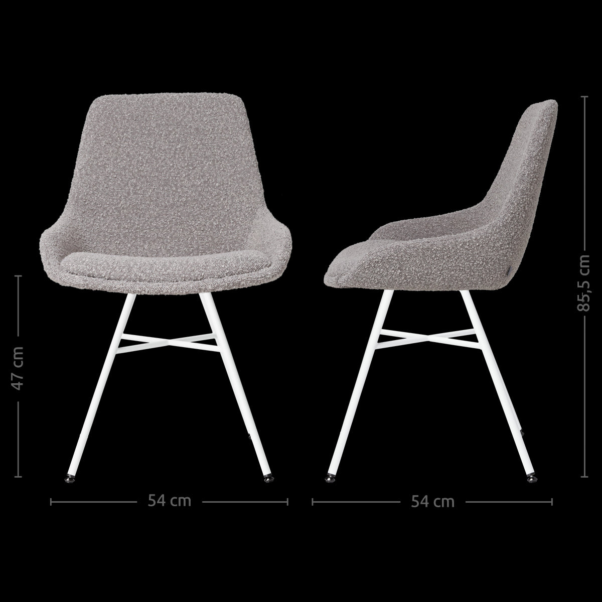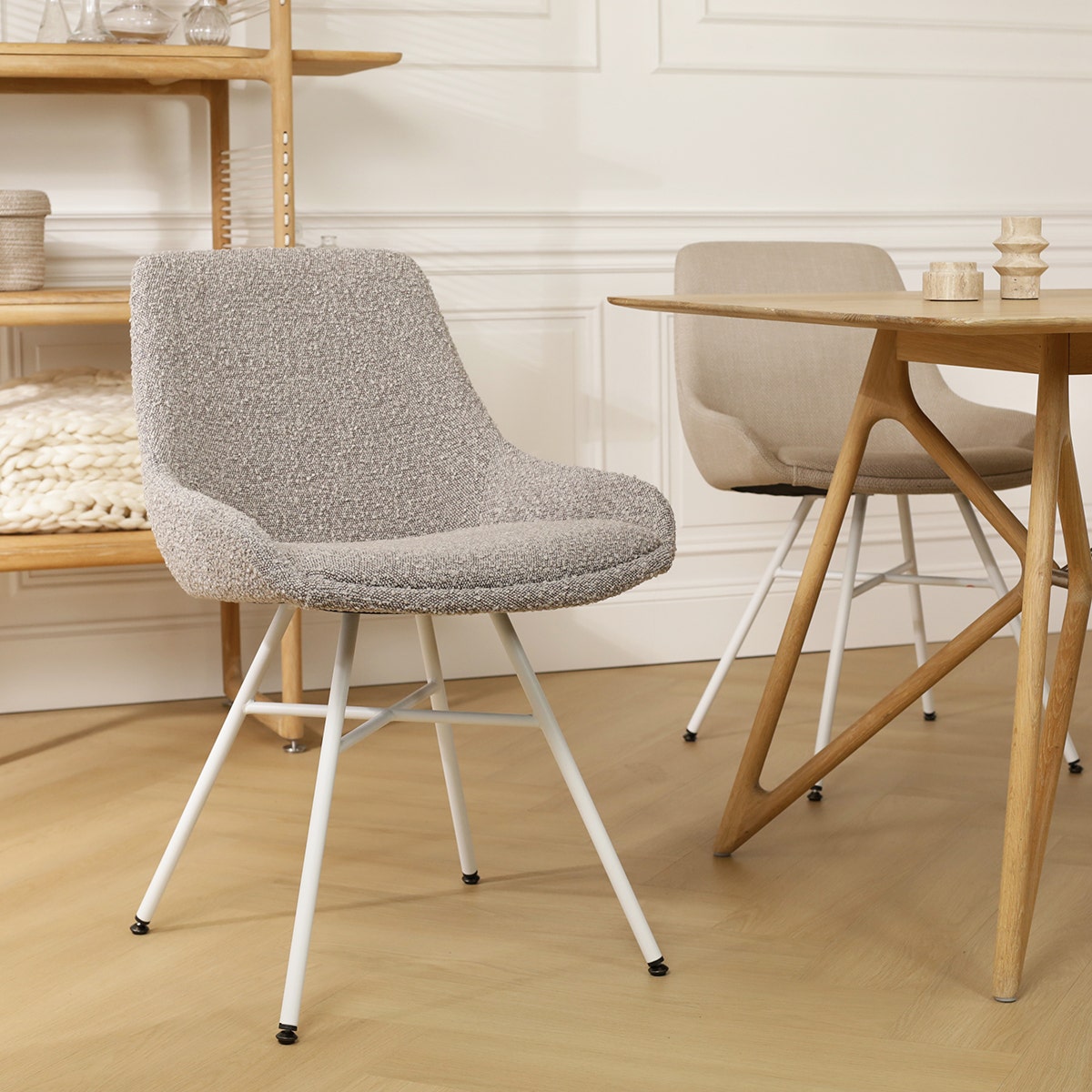 Met een modern ontwerp en een luxe bekleding is de Noa-Isa een stijlvolle toevoeging aan elke eethoek. Het stevige metalen frame met kruisverbinding zorgt voor een stabiele zit en draagt bij aan de duurzaamheid van de stoel. De comfortabele zitting is bekleed met hoogwaardige stof en heeft een gevoerd zitvlak, wat garant staat voor een hoog zitcomfort. De stoel is ontworpen zonder armleuningen zodat je hem zorgeloos onder elke eettafel kan schuiven. De Noa-Isa eetkamerstoel is verkrijgbaar met een bekleding in twee verschillende materialen en kleuren, namelijk beige en taupe. Kies jij voor een tijdloze, gladde stof of ga je voor de ultieme warme uitstraling met bouclé stof? De keuze is helemaal aan jou.