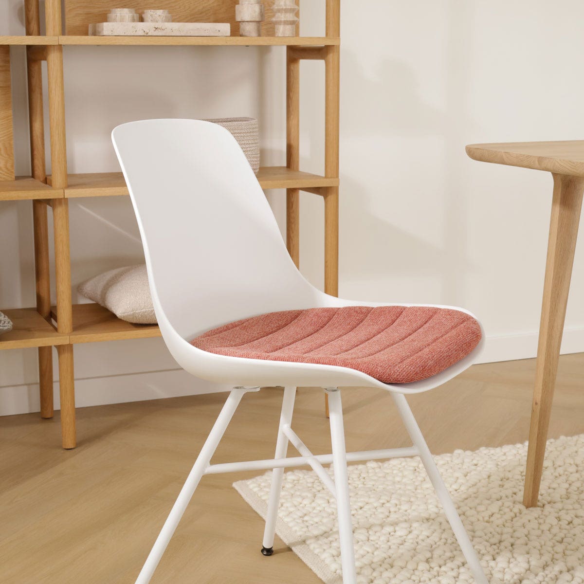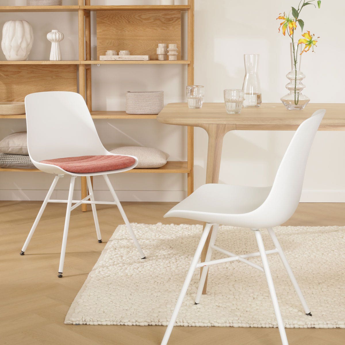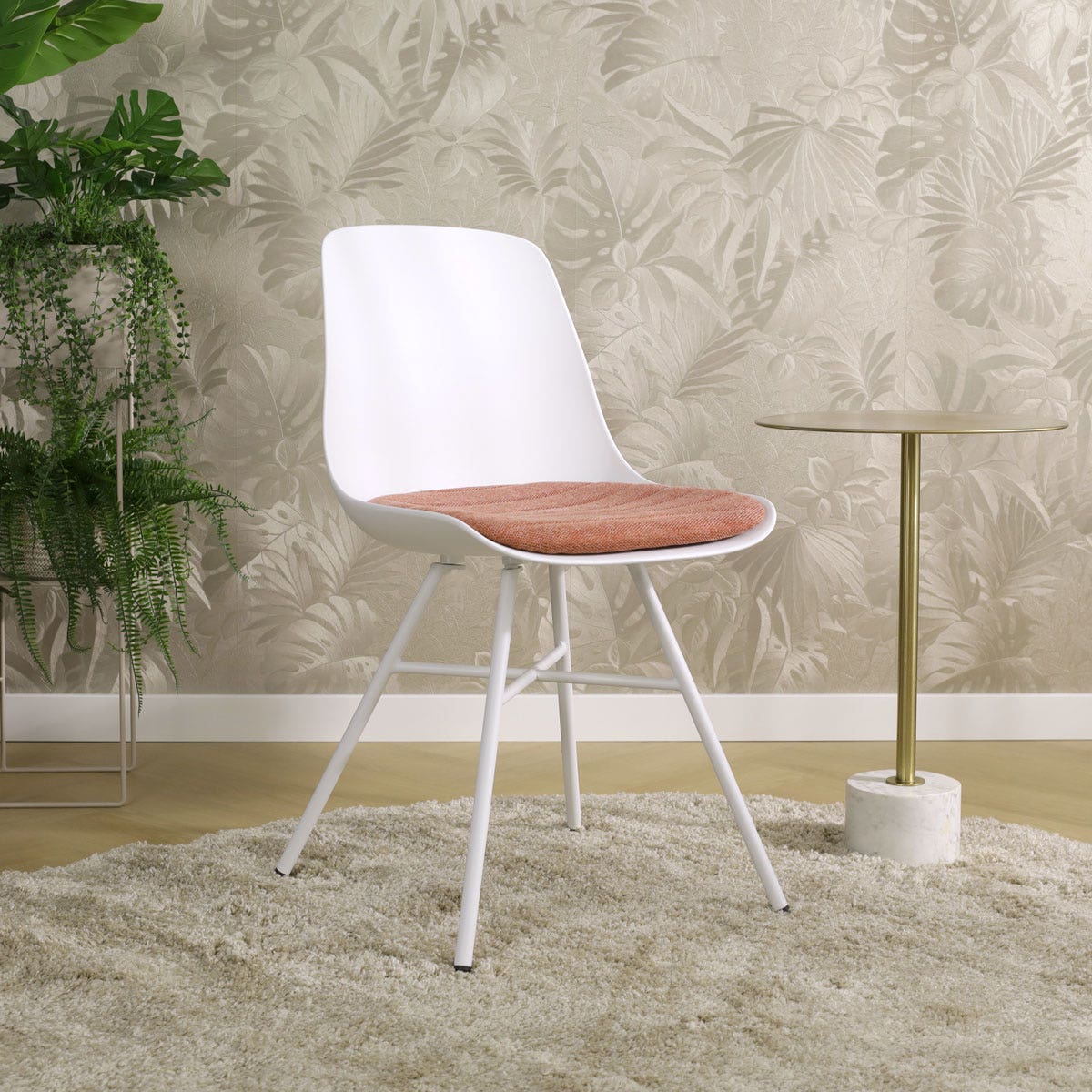 Deze stijlvolle eetkamerstoel heeft een metalen frame met kruisverbinding tussen de poten en verstelbare voetpootjes, zodat de stoel op elke ondergrond stabiel staat. De zitting is gemaakt van hoogwaardig kunststof om de stoel een moderne uitstraling en een onderhoudsvriendelijk en duurzaam karakter te geven. Het leuke aan deze eetkamerstoel is dat je zelf kan bepalen hoe de stoel eruit komt de zien. Je kan namelijk kiezen uit een wit en zwart onderstel, een witte en zwarte kunststof kuip én een vast zitkussen in vijf verschillende kleuren. Zo kan je de Noa-Liv eetkamerstoel helemaal aanpassen aan jouw wensen en eethoek!