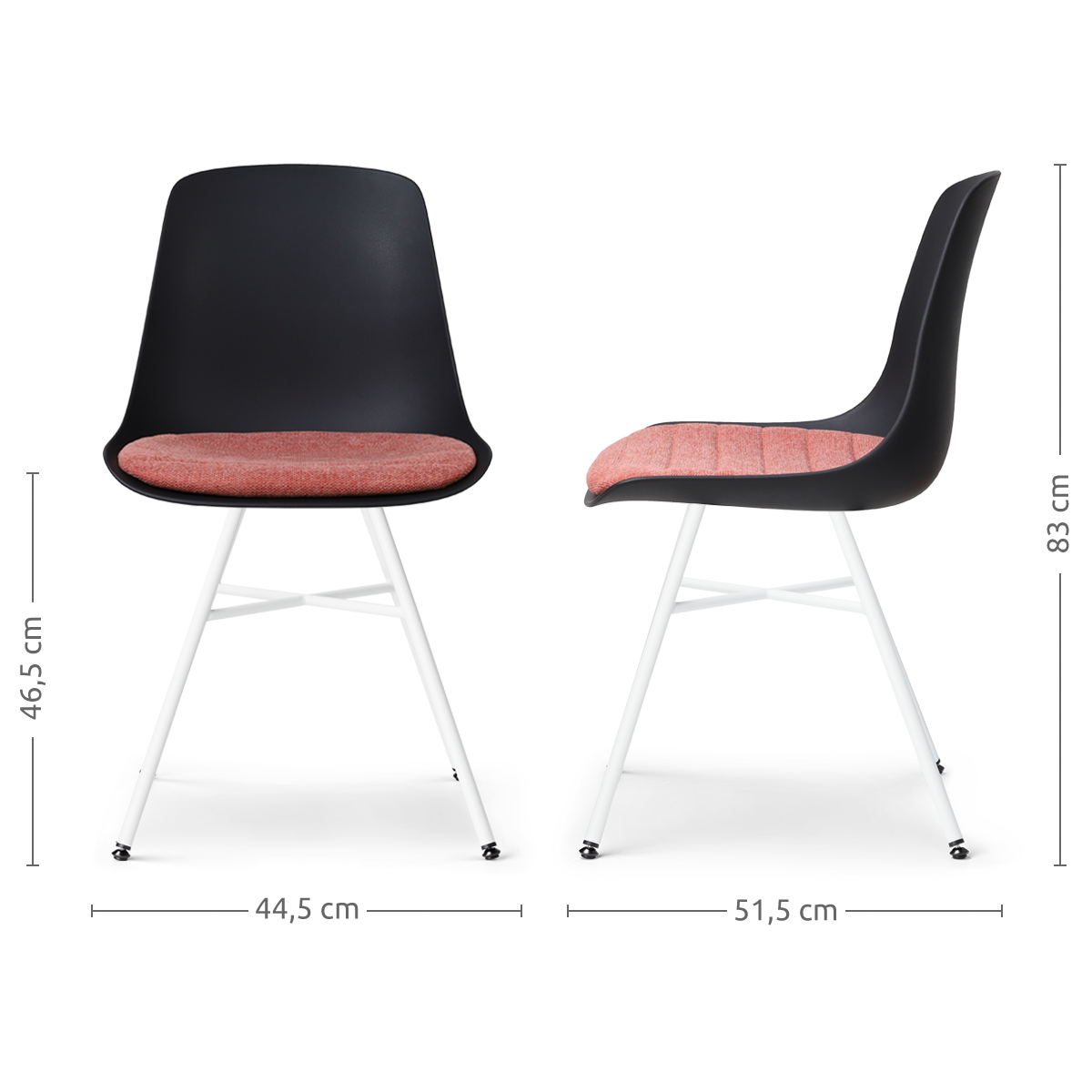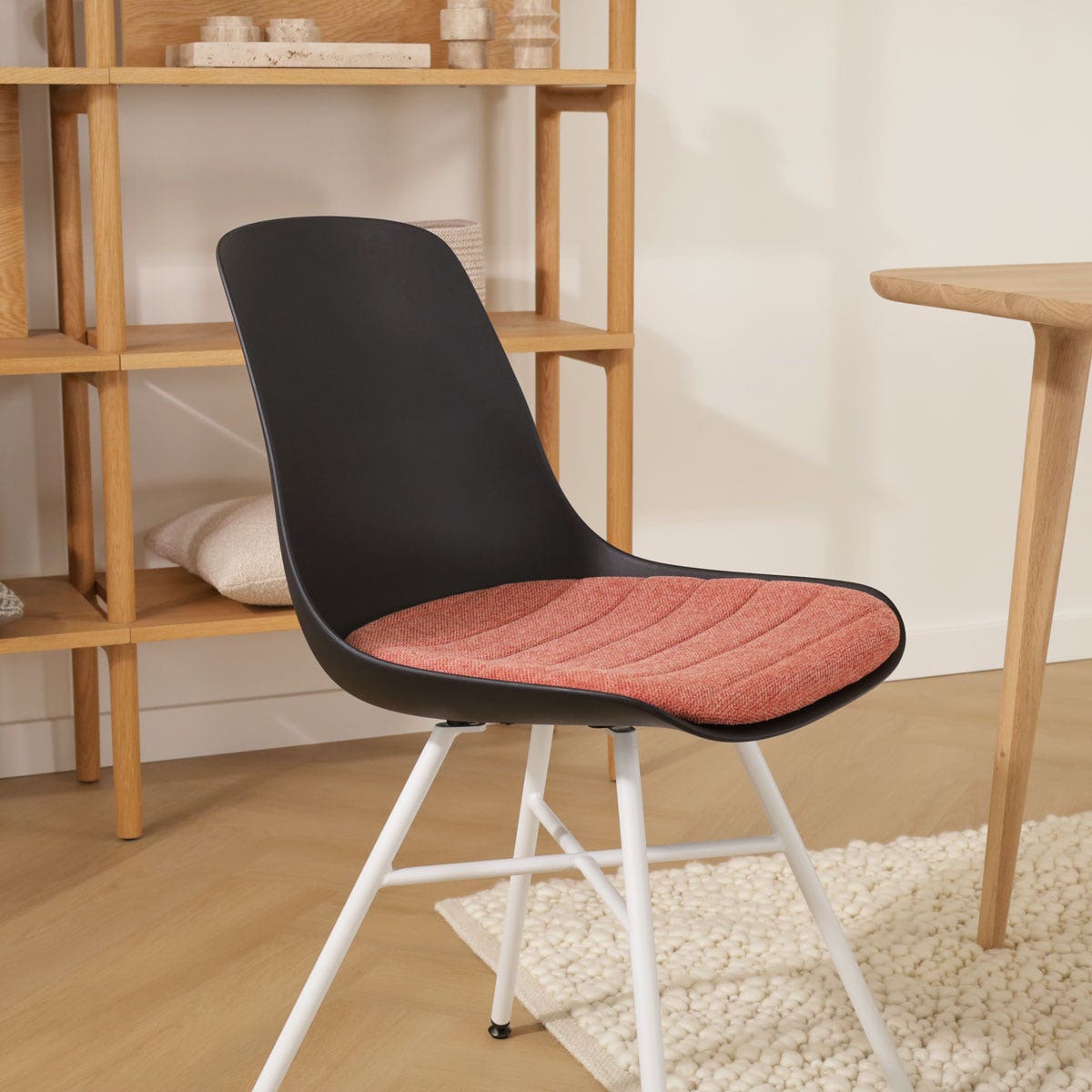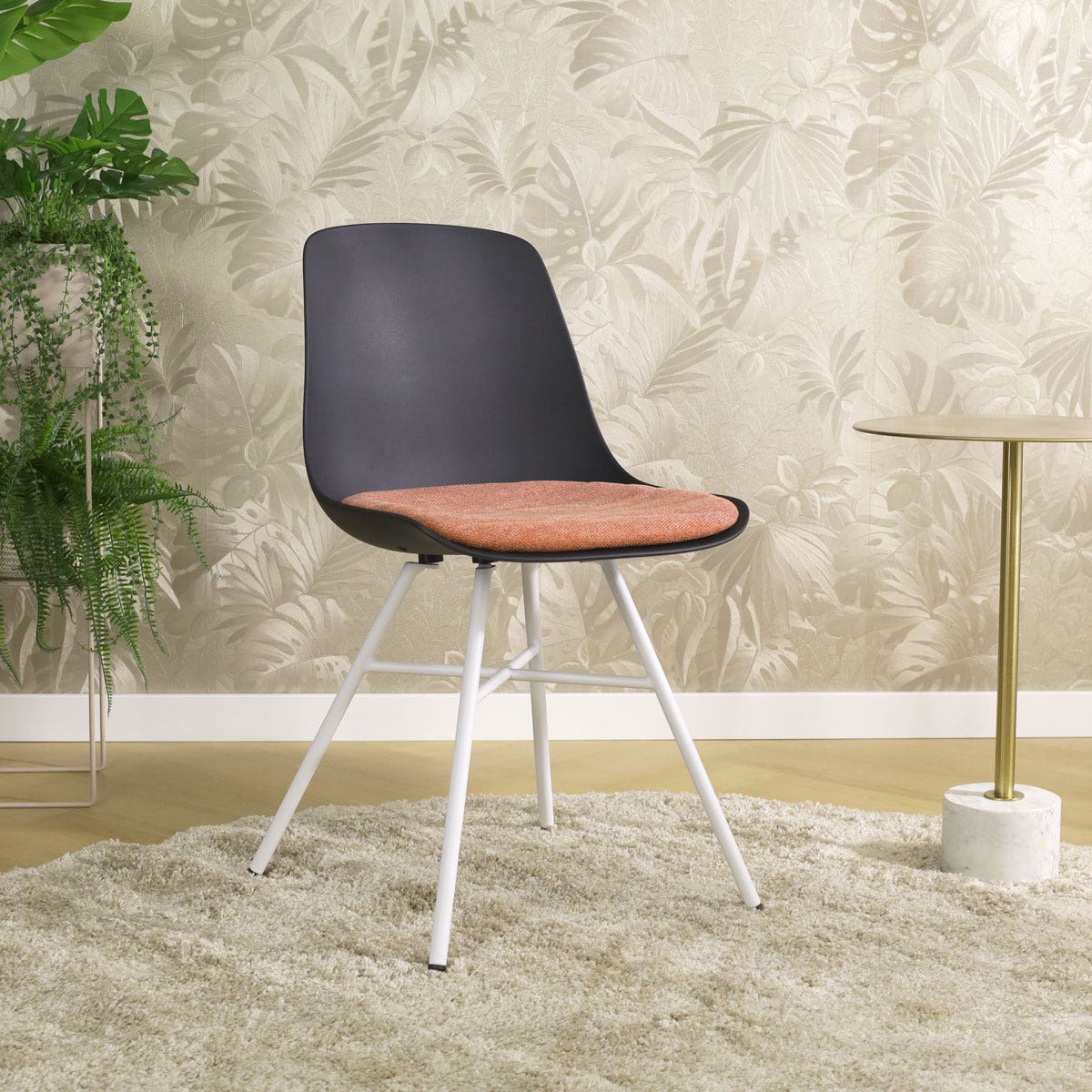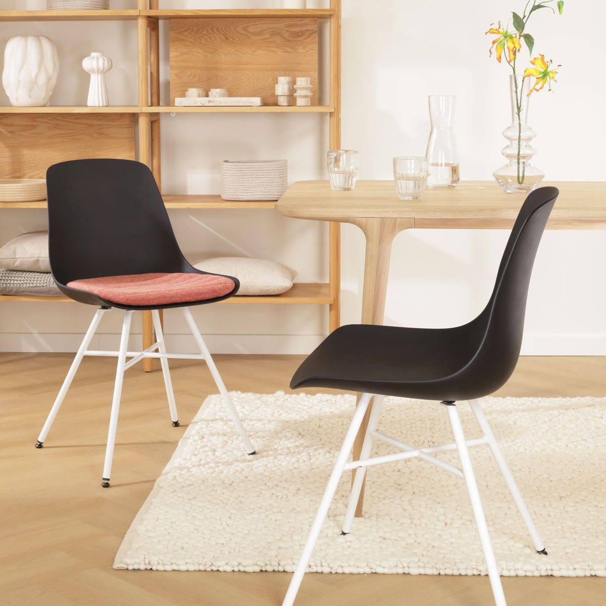 Deze stijlvolle eetkamerstoel heeft een metalen frame met kruisverbinding tussen de poten en verstelbare voetpootjes, zodat de stoel op elke ondergrond stabiel staat. De zitting is gemaakt van hoogwaardig kunststof om de stoel een moderne uitstraling en een onderhoudsvriendelijk en duurzaam karakter te geven. Het leuke aan deze eetkamerstoel is dat je zelf kan bepalen hoe de stoel eruit komt de zien. Je kan namelijk kiezen uit een wit en zwart onderstel, een witte en zwarte kunststof kuip én een vast zitkussen in vijf verschillende kleuren. Zo kan je de Noa-Liv eetkamerstoel helemaal aanpassen aan jouw wensen en eethoek!