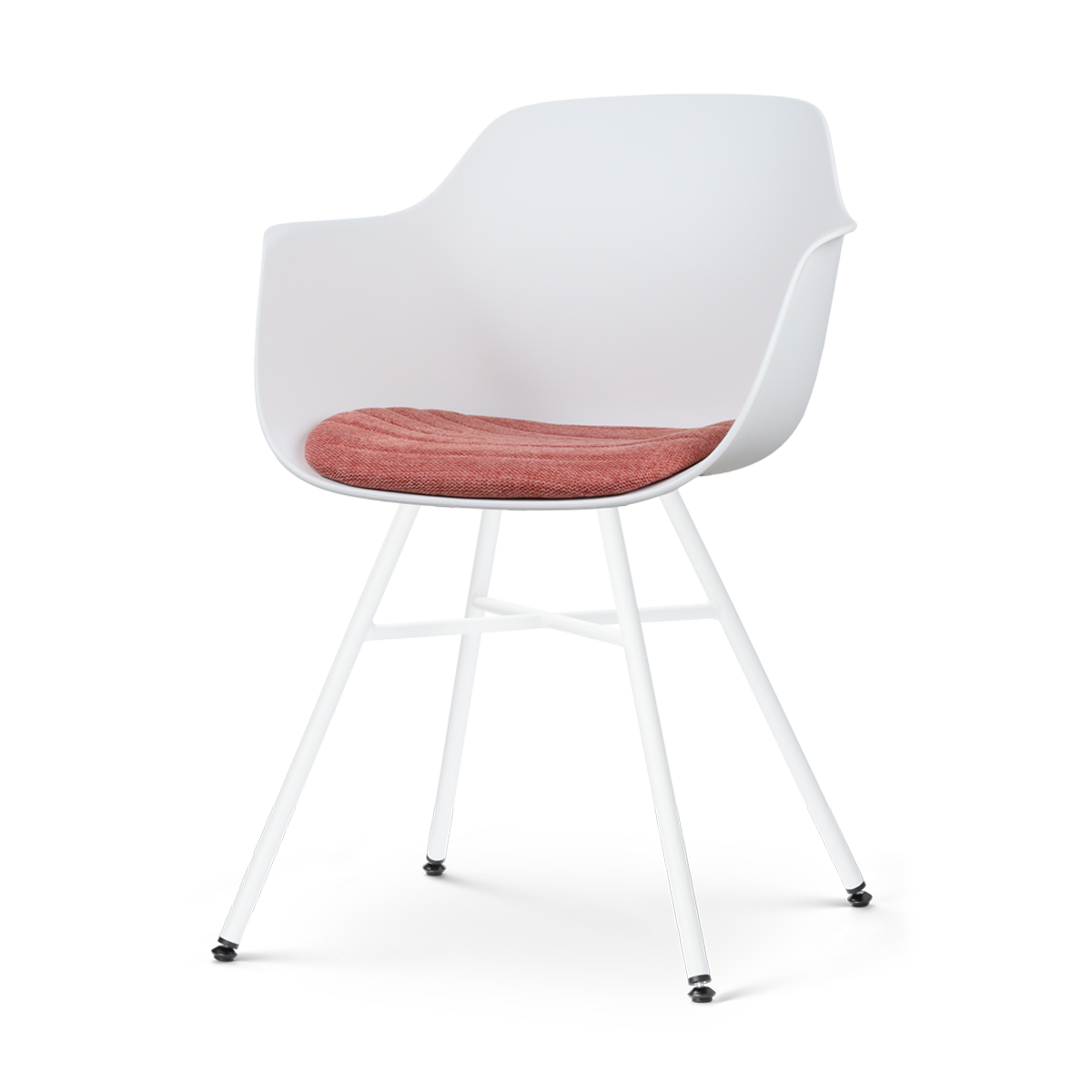 - De stoel is afgewerkt met een wit metalen onderstel met een kruis als detail