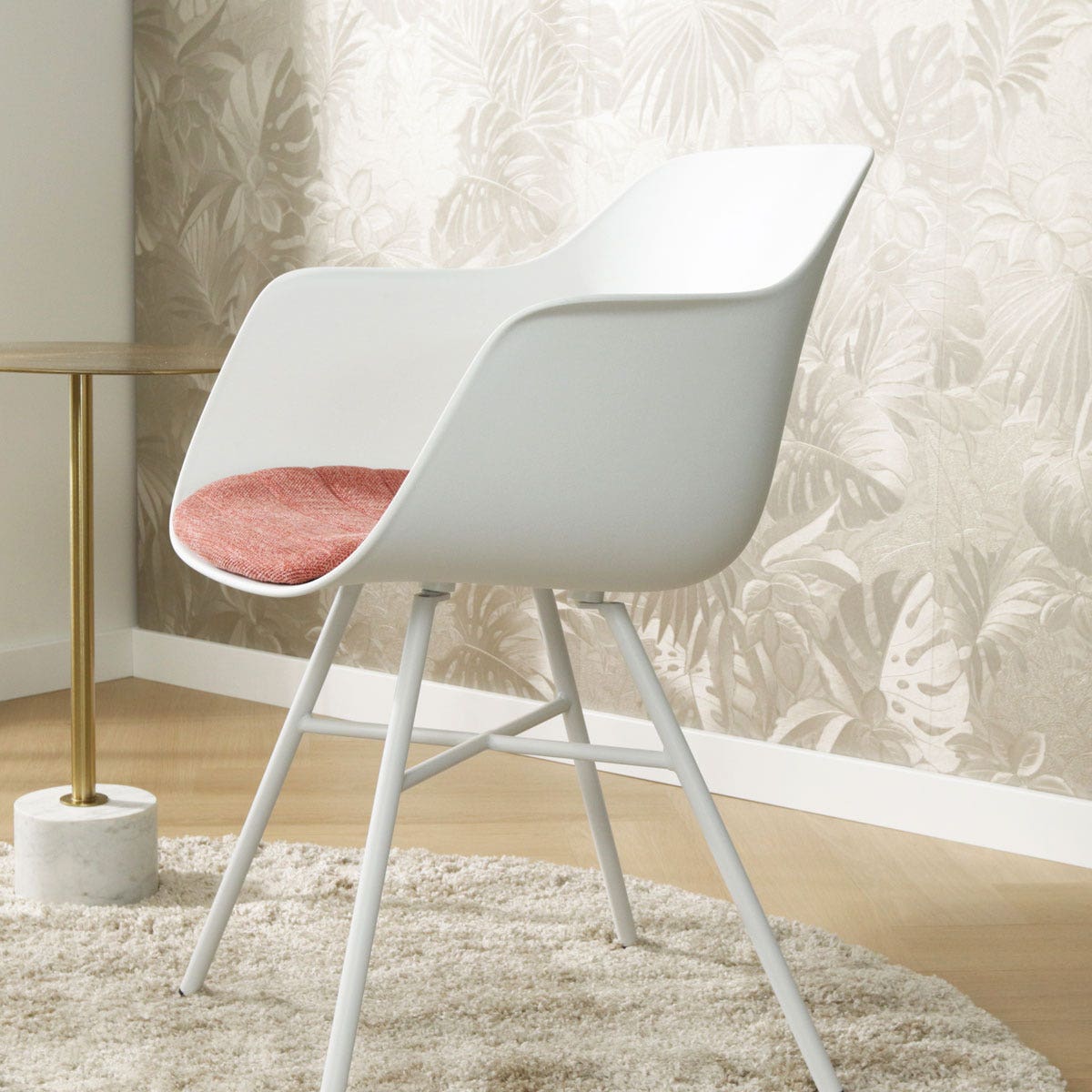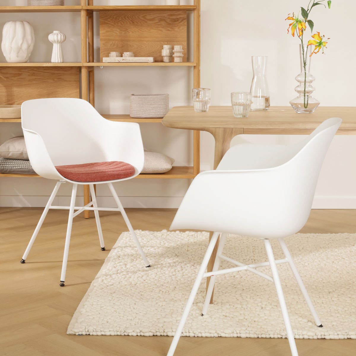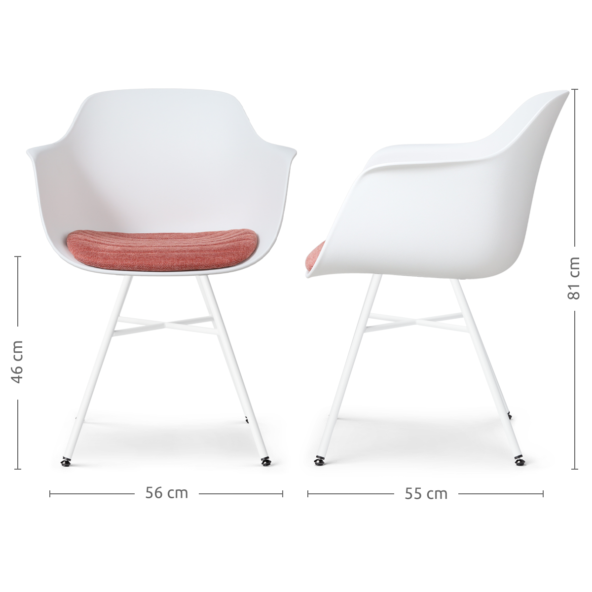 Het leuke is dat je deze stoel zelf kunt samenstellen. Je kunt namelijk kiezen uit meerdere kleuren vaste zitkussens om jouw perfecte kuipstoel samen te stellen. Hierdoor creëer je een frisse uitstraling in je interieur. Bovendien heeft de zitting armleuningen die jouw extra comfort bieden. De eetkamerstoel is afgewerkt met een metalen onderstel met een kruis in het midden als leuk detail. Zie jij jezelf al genieten in deze comfortabele eetkamerstoel?