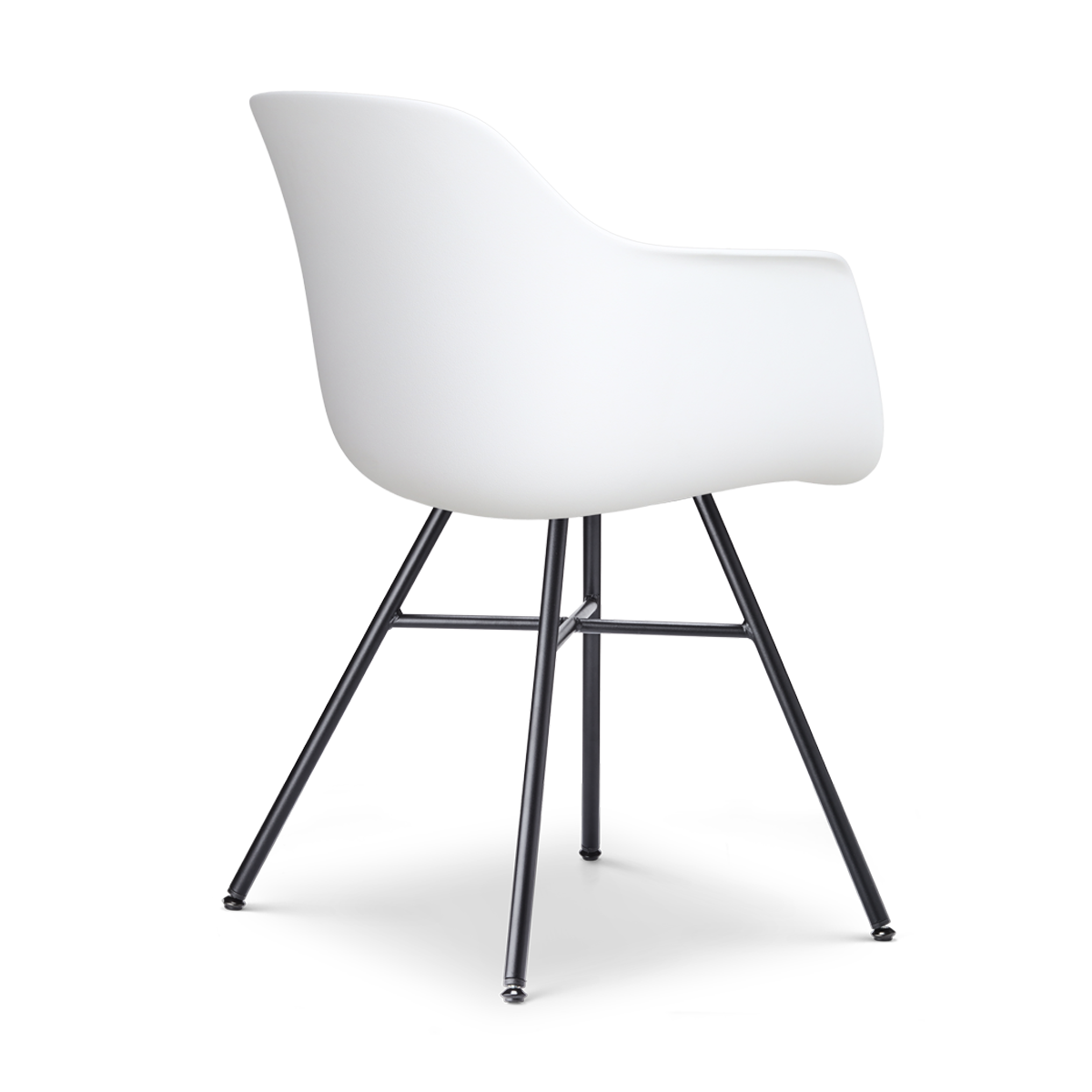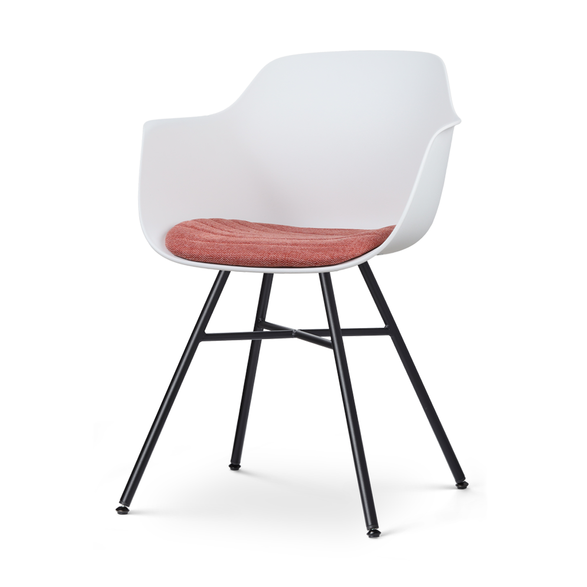 - De stoel is afgewerkt met een zwart metalen onderstel met een kruis als detail