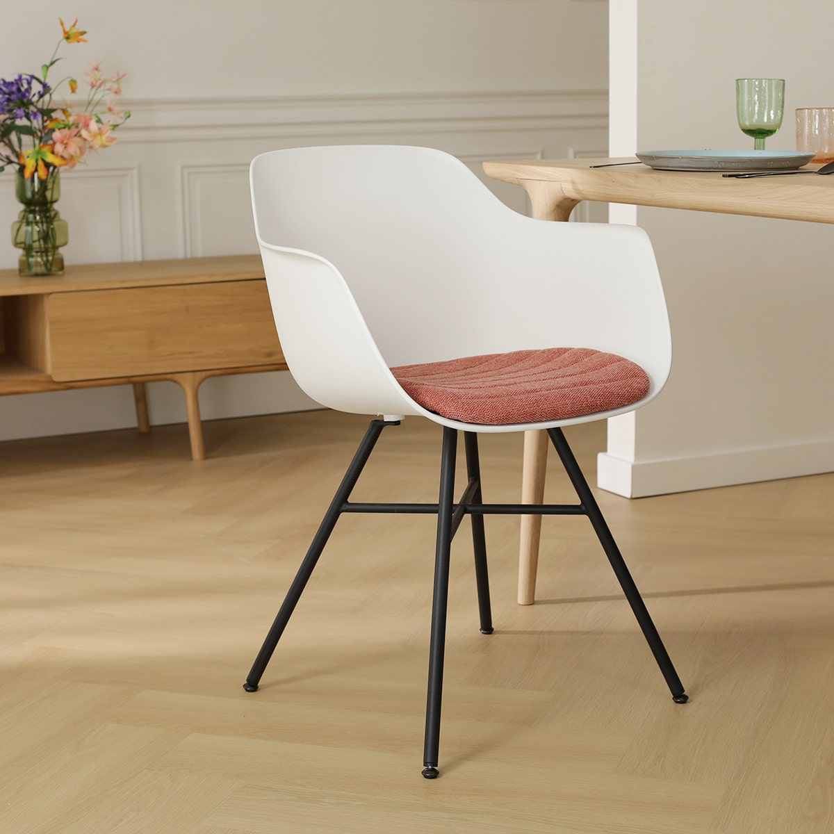 - Gestoffeerde zittingen voelen warmen aan en zorgen voor een warme, sfeervolle uitstraling in je woning