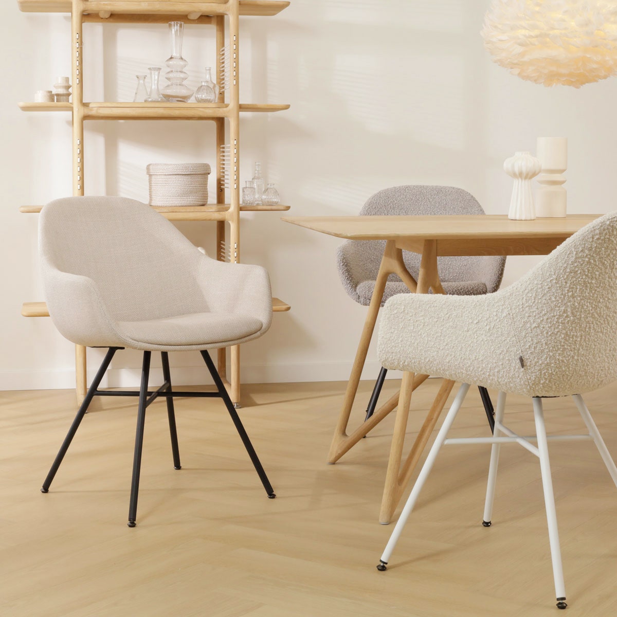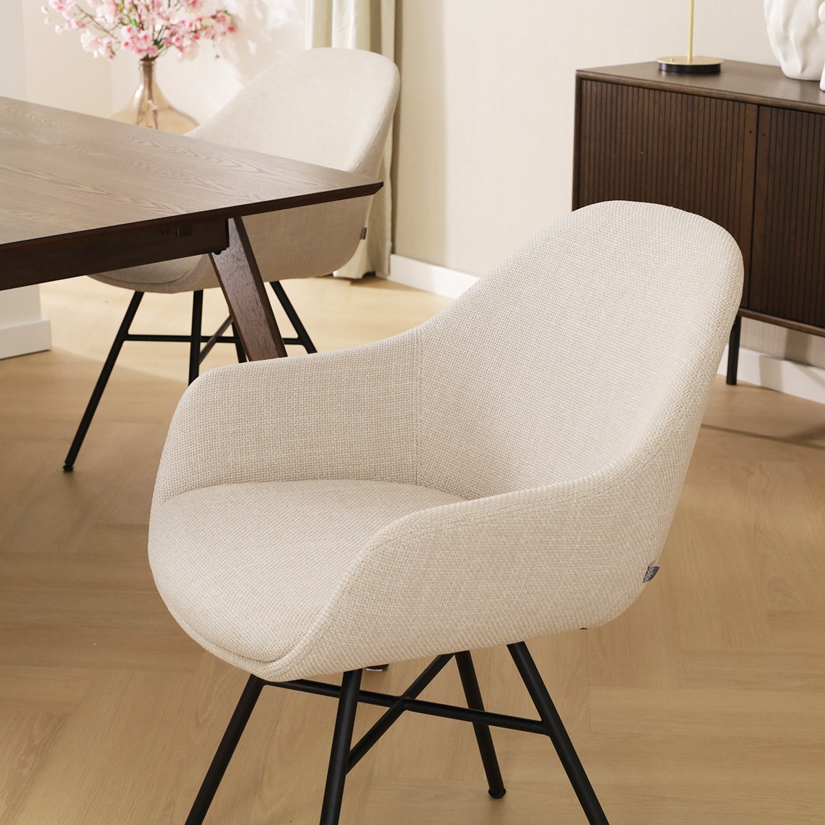 Nolon Noa-Mae Eetkamerstoel Beige - Armleuning - Zwarte Poten