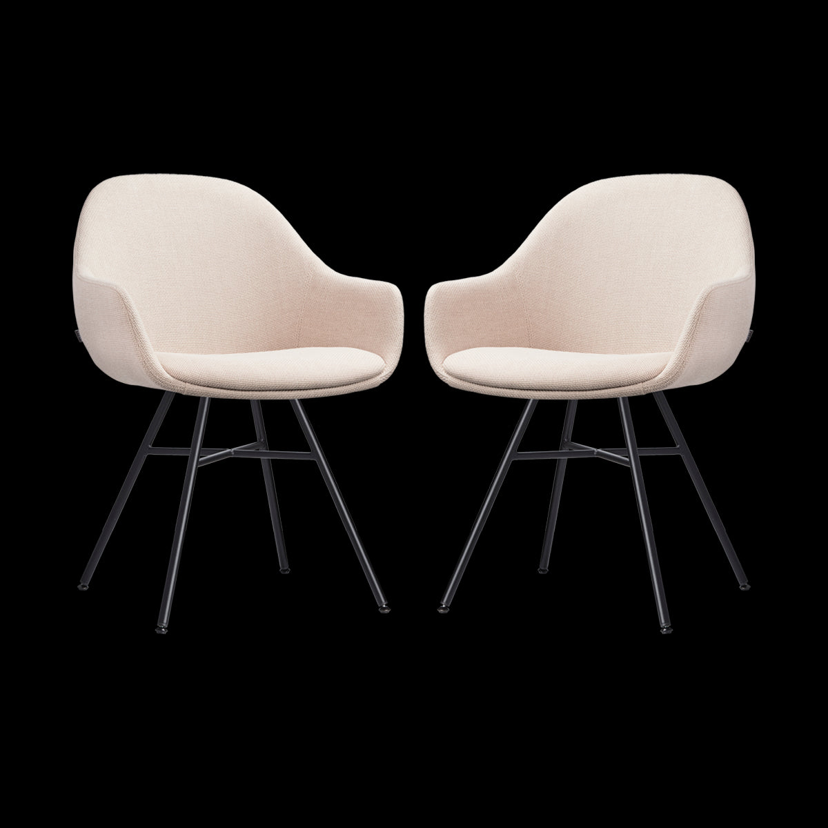 Creëer een stijlvolle sfeer in de eetkamer met de set van twee Noa-Mae eetkamerstoelen met armleuningen van Nolon.
