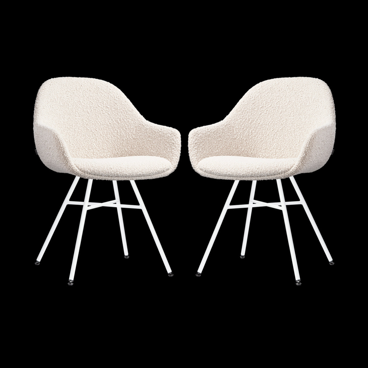 Creëer een stijlvolle sfeer in de eetkamer met de set van twee Noa-Mae eetkamerstoelen met armleuningen van Nolon.